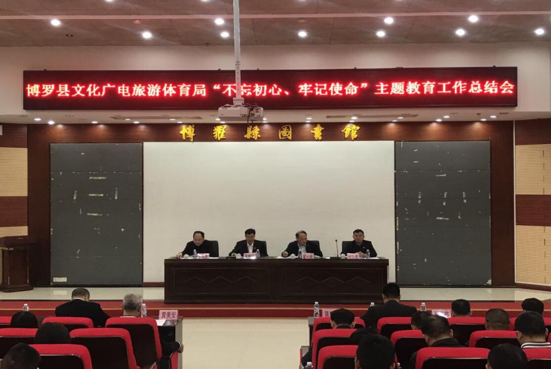 1月15日上午,博羅縣文化廣電旅游體育局召開“不忘初心、牢記使命”主題教育總結大會,會議由局黨組副書記鄒梅清同志主持,第五指導組組長翟元清、成員何容波,局領導班子成員、全體干部職工80余人參加會議。