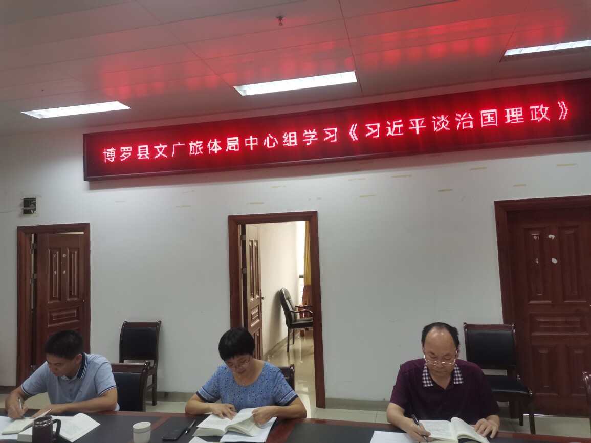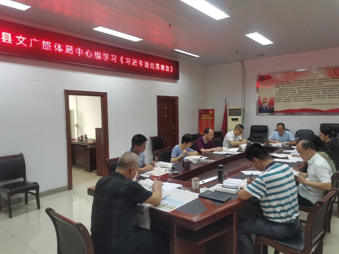 2020年9月7日上午,我局理論學習中心組成員在局二樓會議室專題學習《習近平談治國理政》,與會人員圍繞學習內容進行研討交流。大家紛紛表示,要在學懂弄通、學以致用上下功夫,切實把黨的創新理論轉化為推動我縣文體旅行業高質量發展的實際成效。