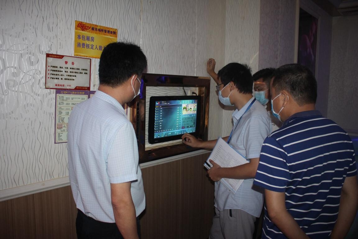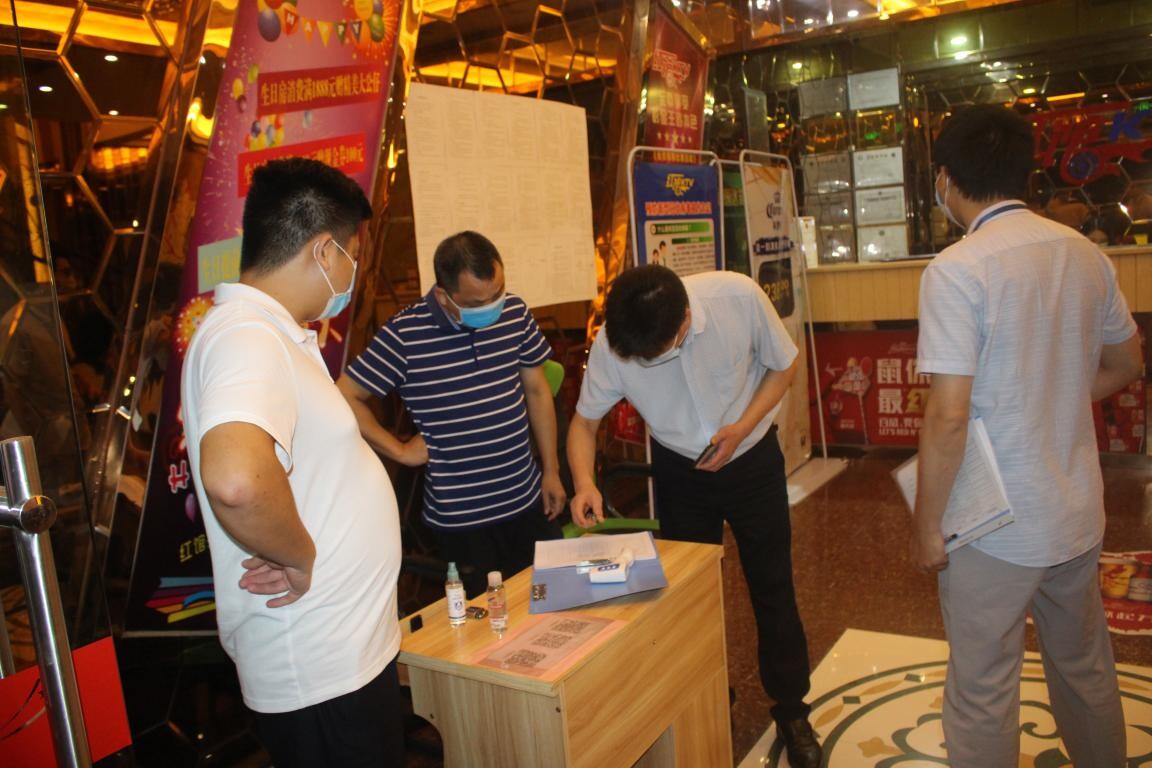 2020年9月1日晚上,執法大隊組織執法人員前往湖鎮開展雙隨機執法檢查。執法人員根據雙隨機執法檢查系統抽查到湖鎮的一家KTV娛樂場所,執法人員到達現場時,該場所正在營業。經過檢查,執法人員發現該場所的消費者自覺排好隊進行量體溫和信息登記,但根據最新的指示要求,消費者之間要間隔1米距離,執法人員現場要求該場所負責人做好間隔1米的措施。在檢查過程中,并未發現該KTV場所點歌系統存在違禁歌曲。該KTV場所臺賬資料完整,防疫措施落實到位,但在個別KTV廂房發現個別的指示牌脫落,執法人員要求該場所負責人對所要的KTV廂房進行檢查,發現有脫落現象立即整改。