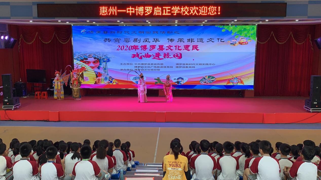 9月10日,由博羅縣新時代文明實踐中心、縣委宣傳部、縣文廣旅體局、縣教育局主辦的2020年博羅縣文化惠民“戲曲進校園”第三場活動在惠州一中博羅啟正學校舉行。