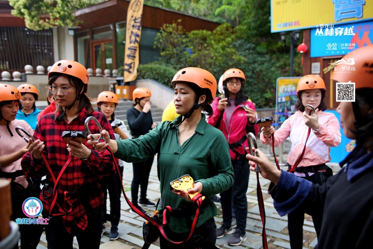 活動內容多彩,首先是驚險刺激的“叢林穿越團隊大挑戰”,全體婦女干部職工在景區工作人員的指導下,有序進行熱身活動并且模擬安全鎖扣使用,為正式開始穿越叢林做準備。穿越叢林的過程中,每個婦女干部職工個個精神抖擻、奮勇爭先,現場一片歡聲笑語、加油鼓勵聲不斷,大家都盡情享受著運動的快樂。然后是參觀客家婆景區,讓大家盡覽博羅非遺項目,零距離感受到博羅非遺文化的魅力。