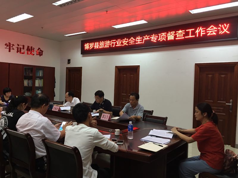 7月16日下午,博羅縣文體旅游局召開(kāi)“博羅縣旅游行業(yè)安全生產(chǎn)專項(xiàng)督查工作會(huì)議”。會(huì)議由縣文體旅游局朱炳文局長(zhǎng)主持,全縣2家旅行社、4家漂流景區(qū)相關(guān)負(fù)責(zé)人參加了此次會(huì)議。