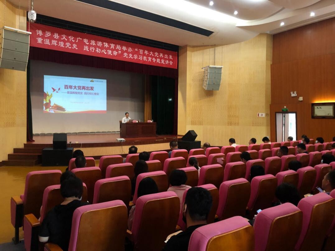 為深入開展黨史學習教育,4月27日下午,博羅縣文化廣電旅游體育局在博羅縣文化館小劇場舉辦“百年大黨再出發——重溫輝煌黨史,踐行初心使命”黨史學習教育專題宣講會,邀請縣委黨校常務校長袁玉佳同志作宣講報告。全局共110名黨員干部參與了本次宣講會。