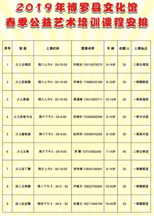 本期春季公益藝術培訓班沒有報名參加的群眾可以關注博羅縣文化館微信公眾號,7月份將開設暑期公益藝術培訓班。