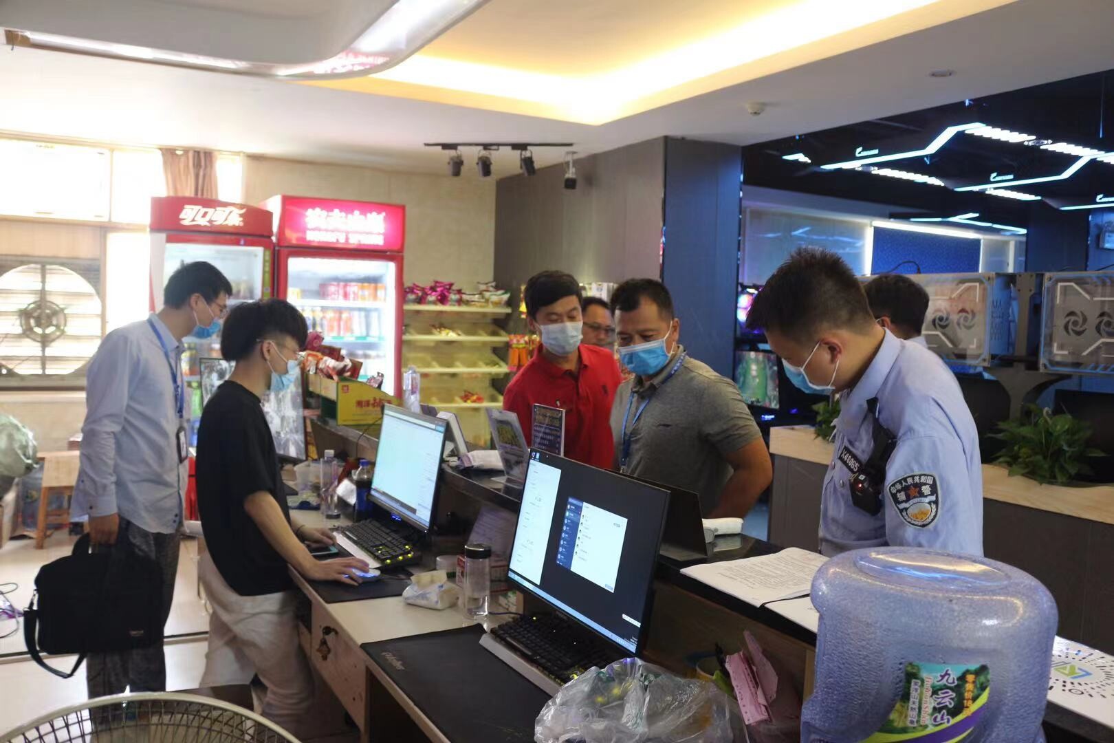 5月13日,執法大隊執法人員聯合公安局網監大隊工作人員開展雙隨機執法檢查,抽查了石灣鎮、園洲鎮各1家網吧,重點對其疫情防控、消防安全、規范經營、是否實名登記上網等資料信息進行檢查。