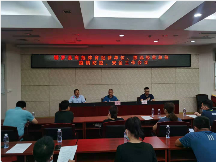 5月26日,我局在縣體育中心新聞發布室組織召開了全縣高危險性體育項目經營單位及漂流經營單位疫情防控常態化管理、安全培訓工作會議,參加培訓的有當地政府的相關管理人員,企業負責人共50余人。主要學習防溺水知識并對疫情防控常態化管理,規范經營等有關事項進行強調,簽訂安全主體責任承諾書。