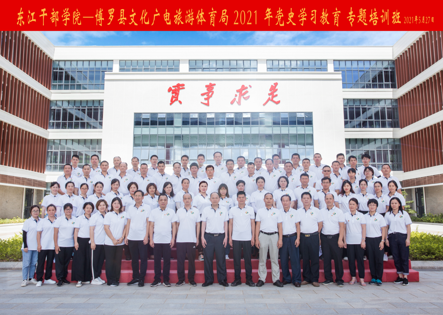2021年5月27日至5月28日,我局組織全體在職黨員,赴東江干部學院開展黨史學習教育專題培訓,通過尋訪紅色印記,銘記革命歷史,推動黨史學習教育往深里走、往實里走、往心里走,激勵廣大黨員干部立足崗位,腳踏實地,勇挑重擔,推進文廣旅體工作高質量發展。