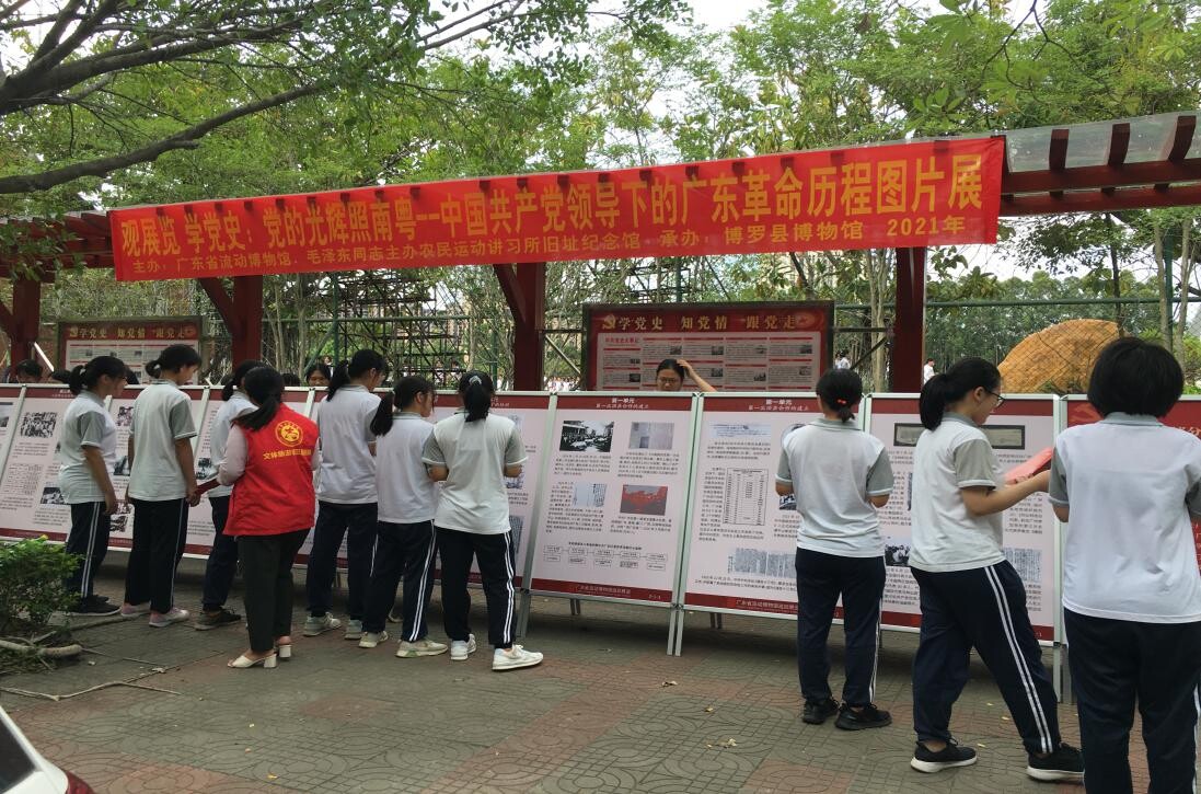 5月30日縣博物館在博羅中學(高中部)開展了“觀展覽、學黨史”送展進校園活動。此次展覽,通過圖文并茂的展板形式,向師生們展示了中國共產黨領導下的廣東革命歷程。讓更多青少年加深理解并更加尊重紅色文化,了解中國共產黨人在廣東地區艱苦奮斗的事跡,感受他們不惜用鮮血染紅勝利旗幟的革命精神。