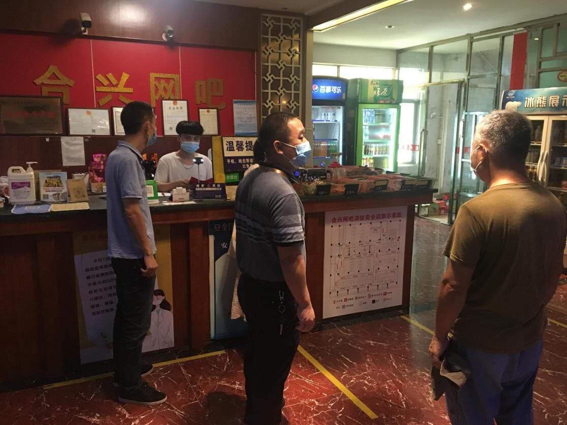 9月2日,執法大隊組織執法人員前往羅陽街道,對所有網吧開展創文工作、疫情防控工作檢查,對存在落實不到位的網吧場所,現場責令整改,并要求業主嚴格按照相關規定做好疫情防控工作。