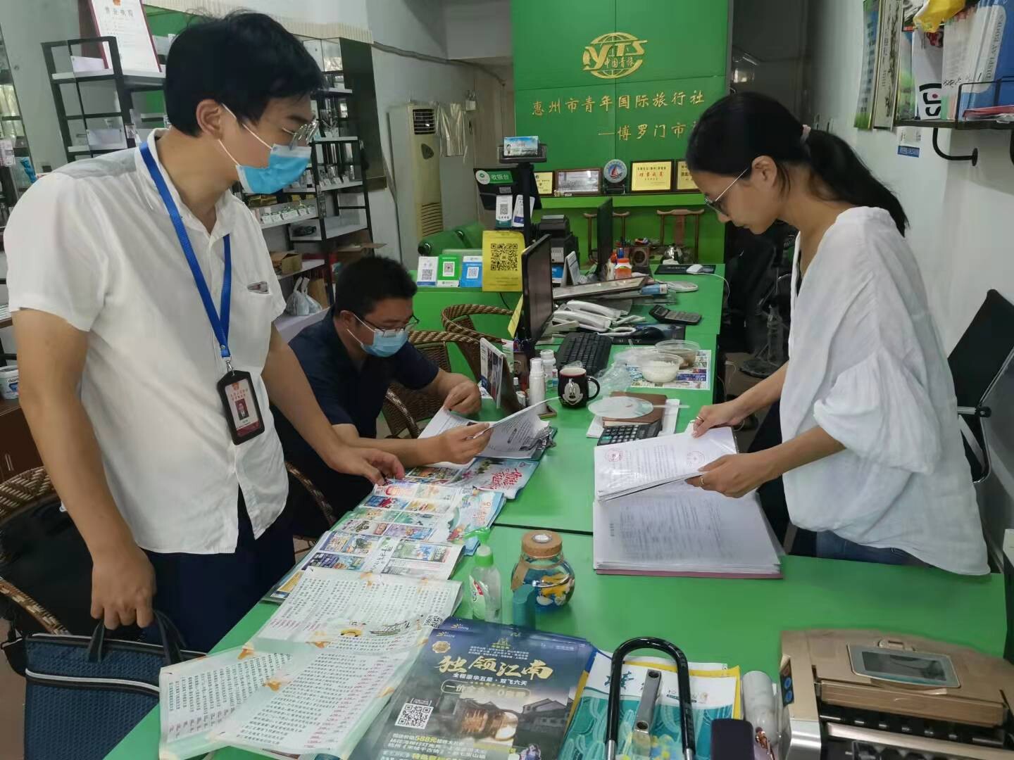 9月15日,局執法大隊工作人員按2021年度惠州市雙隨機抽查工作計劃,前往羅陽街道,開展旅行社雙隨機執法檢查行動,共檢查了3家旅行社的合法合規經營及疫情防疫執行措施,著重檢查不組團前往國內中高風險地區所在省(區、市)旅游,不承接來自中高風險地區所在省(區、市)的旅游團隊,不組織中高風險地區游客外出旅游。