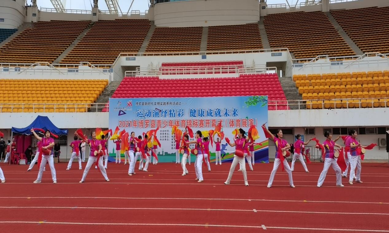 10月22日,博羅縣青少年體育錦標賽開幕式后,由博羅縣老年人體育協會承辦的體育展演,表演了13個節目,有氣勢磅礴的腰鼓舞、颯爽英姿的健身舞、活力四射的健身操等。