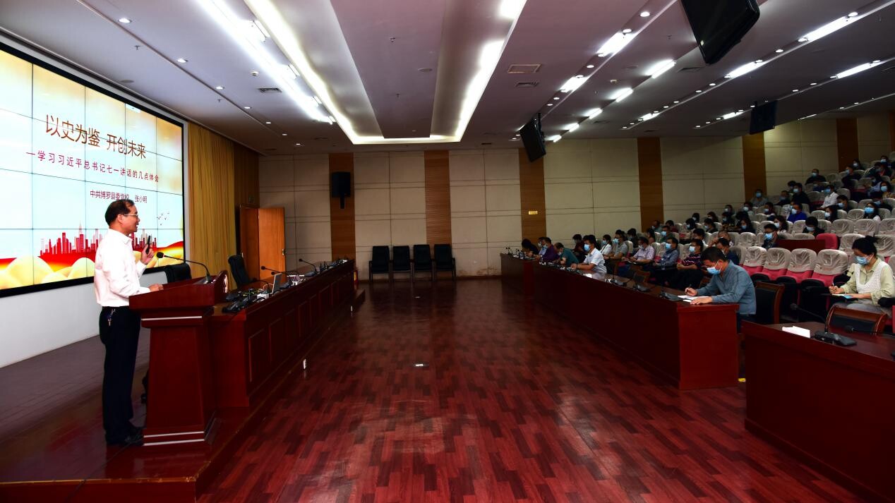 報告會上,原黨校校長張小明以“以史為鑒?開創(chuàng)未來”為題,用通俗易懂的語言,結合實例、聲情并茂地向與會人員進行了系統(tǒng)的解讀,從黨的輝煌成就、艱辛歷程、歷史經驗,講到習近平總書記提出的“九個必須”,引導與會人員做到“學史明理、學史增信、學史崇德、學史力行”,了解“學黨史、悟思想、辦實事、開新局”的重要性,對習近平總書記系列重要講話精神有了更加深入準確的理解和把握,讓紅色文化與紅色精神入腦入心。