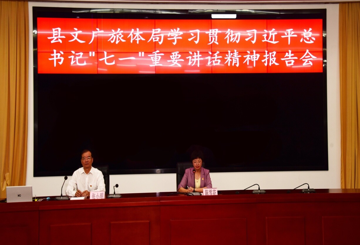 報告會后局領導指出,學習貫徹好習近平總書記“七一”重要講話精神,是當前和今后一個時期的重大政治任務,是黨史學習教育的核心內容。強調,我們要進一步提高政治站位,深入領會習近平總書記“七一”重要講話的豐富內涵和精神實質,把學習貫徹習近平總書記“七一”重要講話精神和做好當前重點工作結合起來,把講話精神轉化為推進我縣文旅行業(yè)又好又快發(fā)展的強大動力。