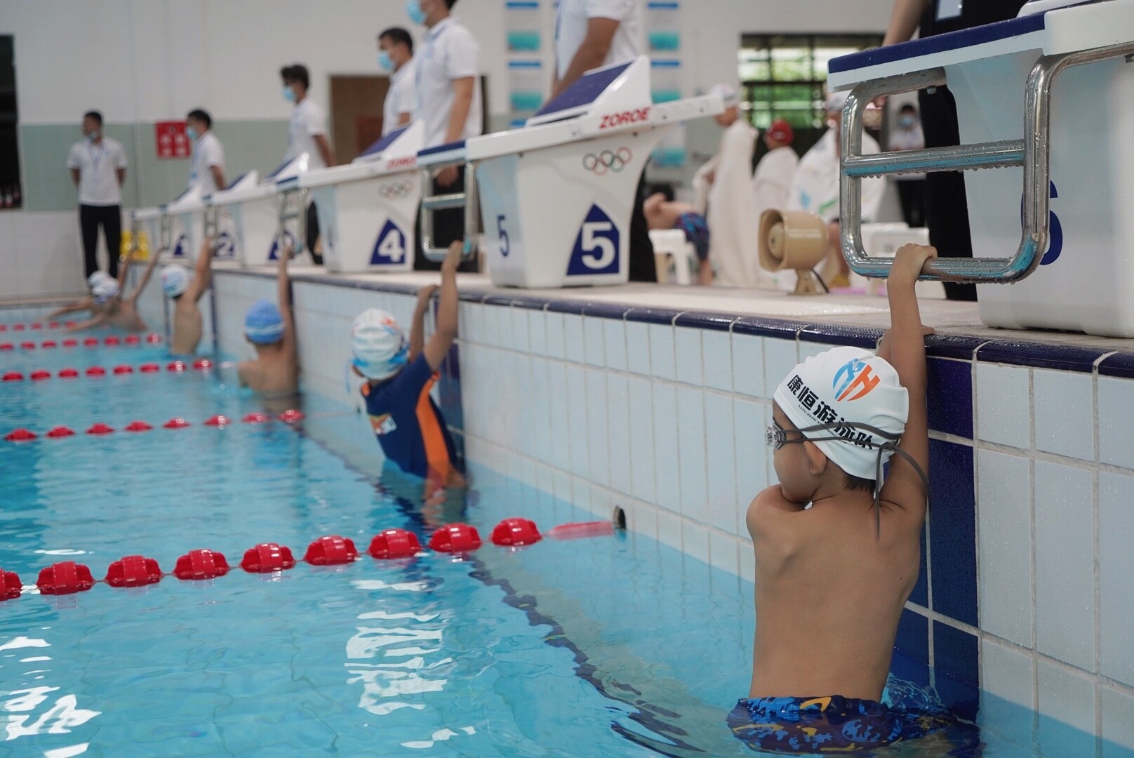比賽開始前,選手們個個舒展筋骨,跳進泳池適應水溫,做足了熱身運動。隨著裁判員一聲響亮的哨聲,泳池中頓時水花飛濺,選手們魚躍入水、你追我趕,泳池邊啦啦隊們激情吶喊、鼓勁加油。比賽現場高潮迭起、精彩紛呈,運動員和觀眾們都被緊張活躍的運動氛圍感染,場內場外一片熱鬧。