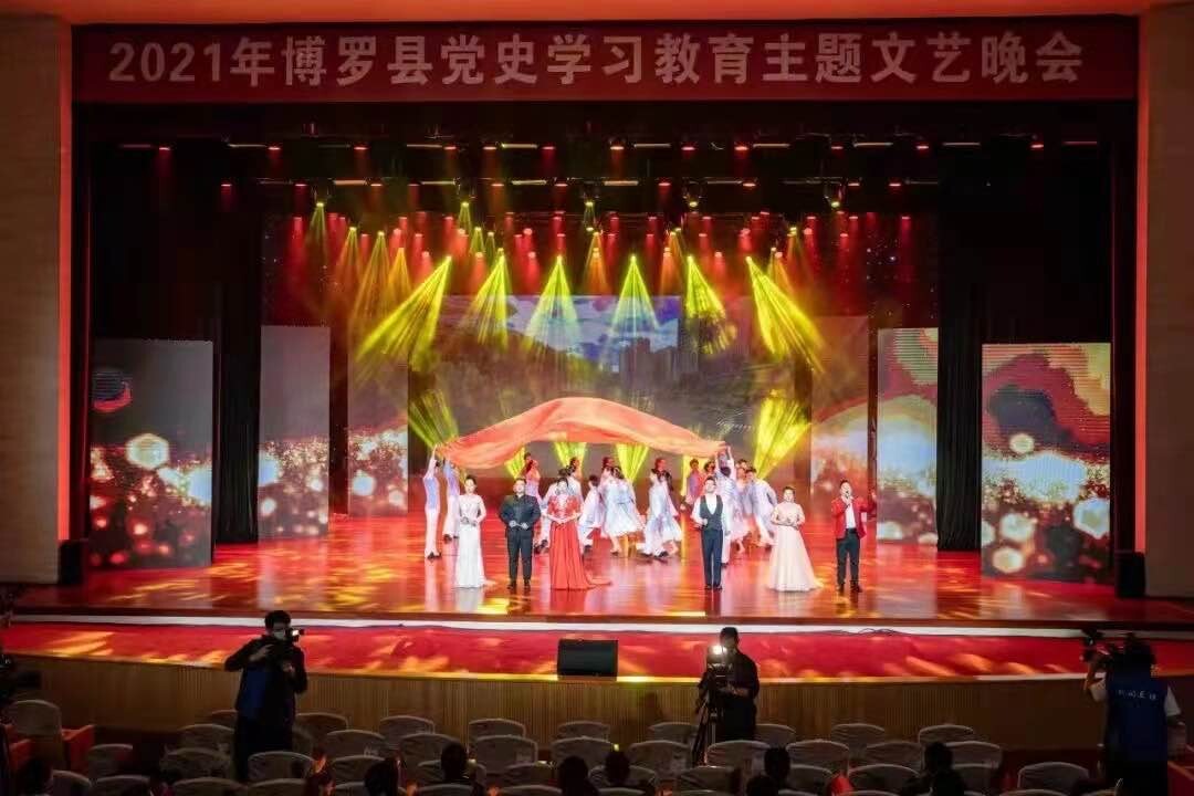 11月16日,由中共博羅縣委宣傳部、博羅縣文化廣電旅游體育局聯合主辦的紅色羅浮正青春——博羅縣黨史學習教育主題文藝晚會在縣文化中心影劇院舉行,縣四套班子領導以及縣第十七屆人大代表、政協博羅縣第十一屆委員等觀眾到場觀看。晚會分《紅色羅浮》《紅色青春》兩個篇章,緊扣“兩會”主旨與“黨史學習教育”主題,謳歌了博羅原創、博羅故事、博羅形象、博羅精神,突出“學黨史、悟思想、辦實事、開新局”,受到了廣大觀眾的一致好評。