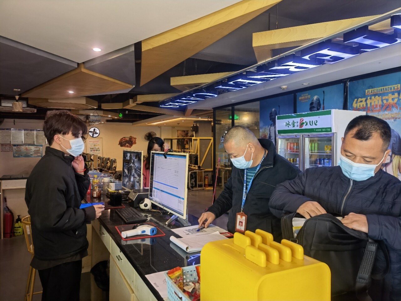 2021年12月28日,局市場(chǎng)管理股工作人員前往龍溪街道,會(huì)同當(dāng)?shù)?/span>文化服務(wù)中心工作人員對(duì)9家網(wǎng)吧進(jìn)行暫停營(yíng)業(yè)情況檢查。