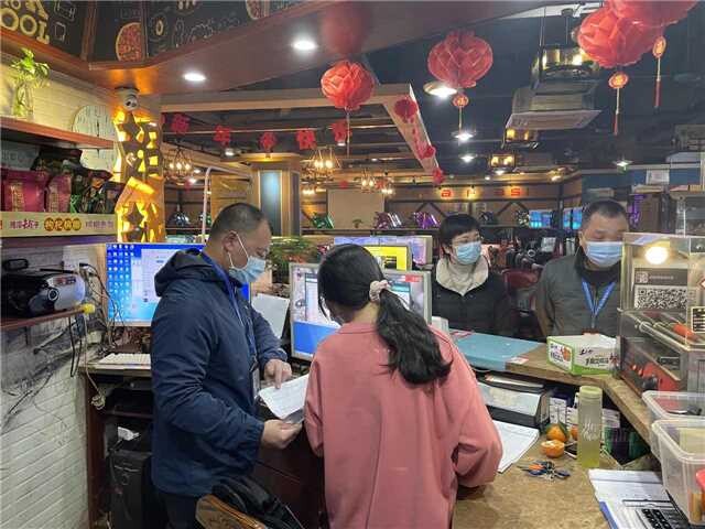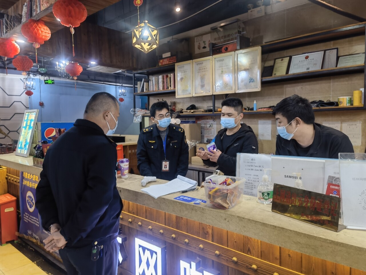 2月3日,執法大隊組織執法人員前往湖鎮鎮、長寧鎮,對網吧、KTV等文化經營場所開展疫情防控檢查。檢查中,發現2家網吧存在未佩戴口罩、未登記,1家KTV場所存在接納人員超過50%限流等疫情防控不到位的情況,執法人員現場對場所進行清場,并責令其停業整改。