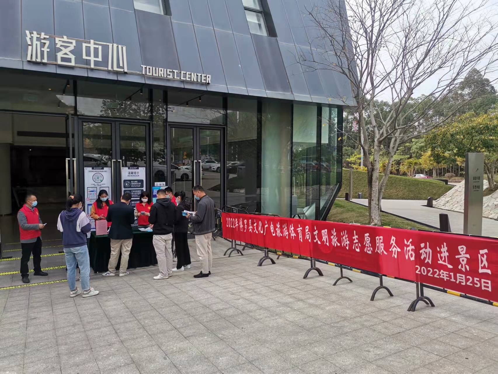 1月25日,2022年博羅縣文化廣電旅游體育局文明旅游志愿服務活動進景區在國家4A級旅游景區五礦哈施塔特旅游小鎮舉行。文明旅游志愿者們通過發放文明旅游宣傳資料、講解、引導等方式,向景區游客宣傳安全旅游、文明出行的重要意義,并通過現場勸導不文明行為,倡導廣大游客從小事做起,愛護環境,文明出行。