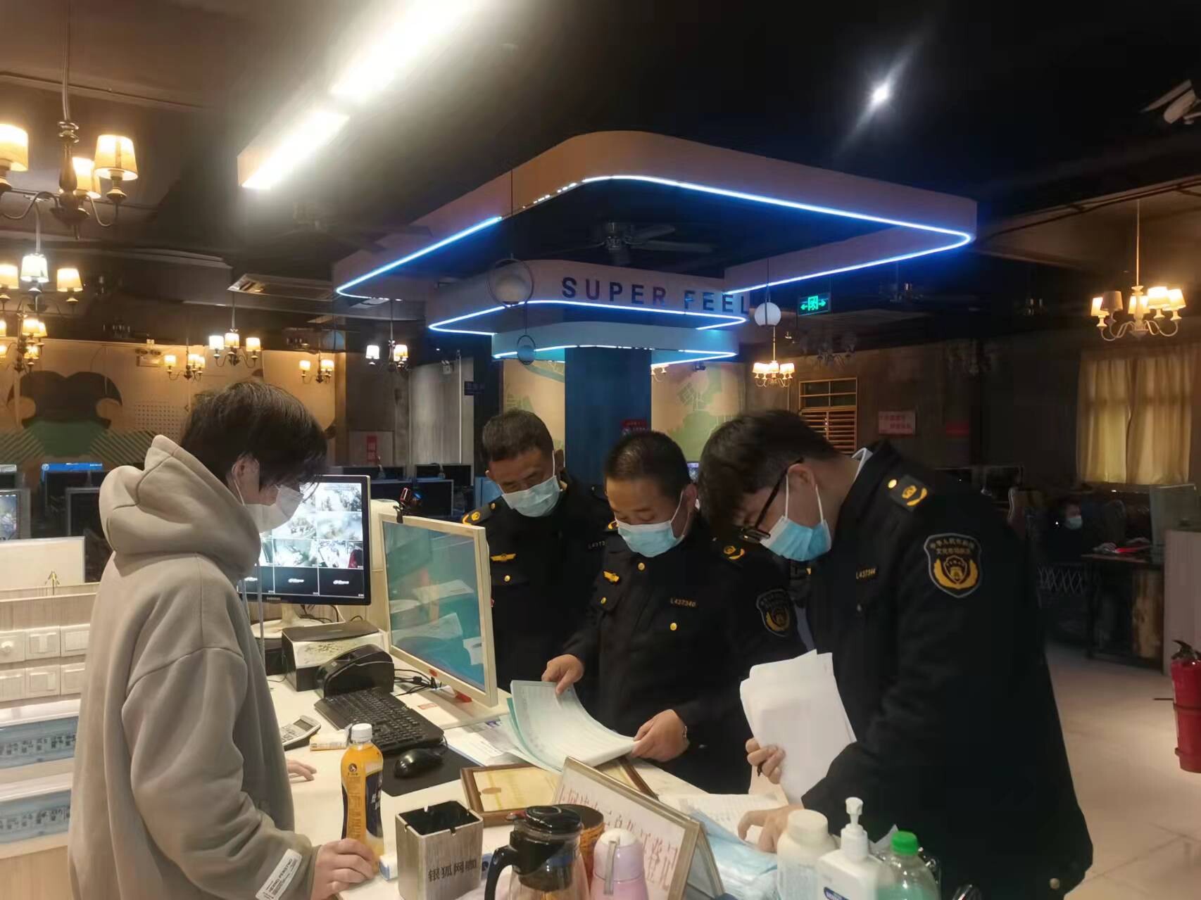 2月9日,局黨組成員、三級主任科員李衛明帶隊,執法大隊工作人員一行前往園洲鎮,開展網吧、KTV等文化經營場所疫情防控檢查及北京冬奧會期間文化和旅游市場執法檢查。在檢查中,執法人員要求各場所嚴格按照最新疫情防控工作要求進行接納人員50%限流,落實掃碼、測溫、登記等防控措施。其中,發現2家網吧存在未佩戴口罩、未登記等防疫措施落實不到位的問題,執法人員現場清場,并責令其停業整改。