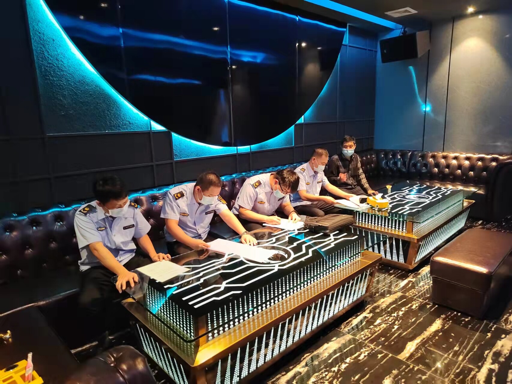 3月30日,市場管理股工作人員前往橫河鎮對1家KTV的續期進行場地審核。
