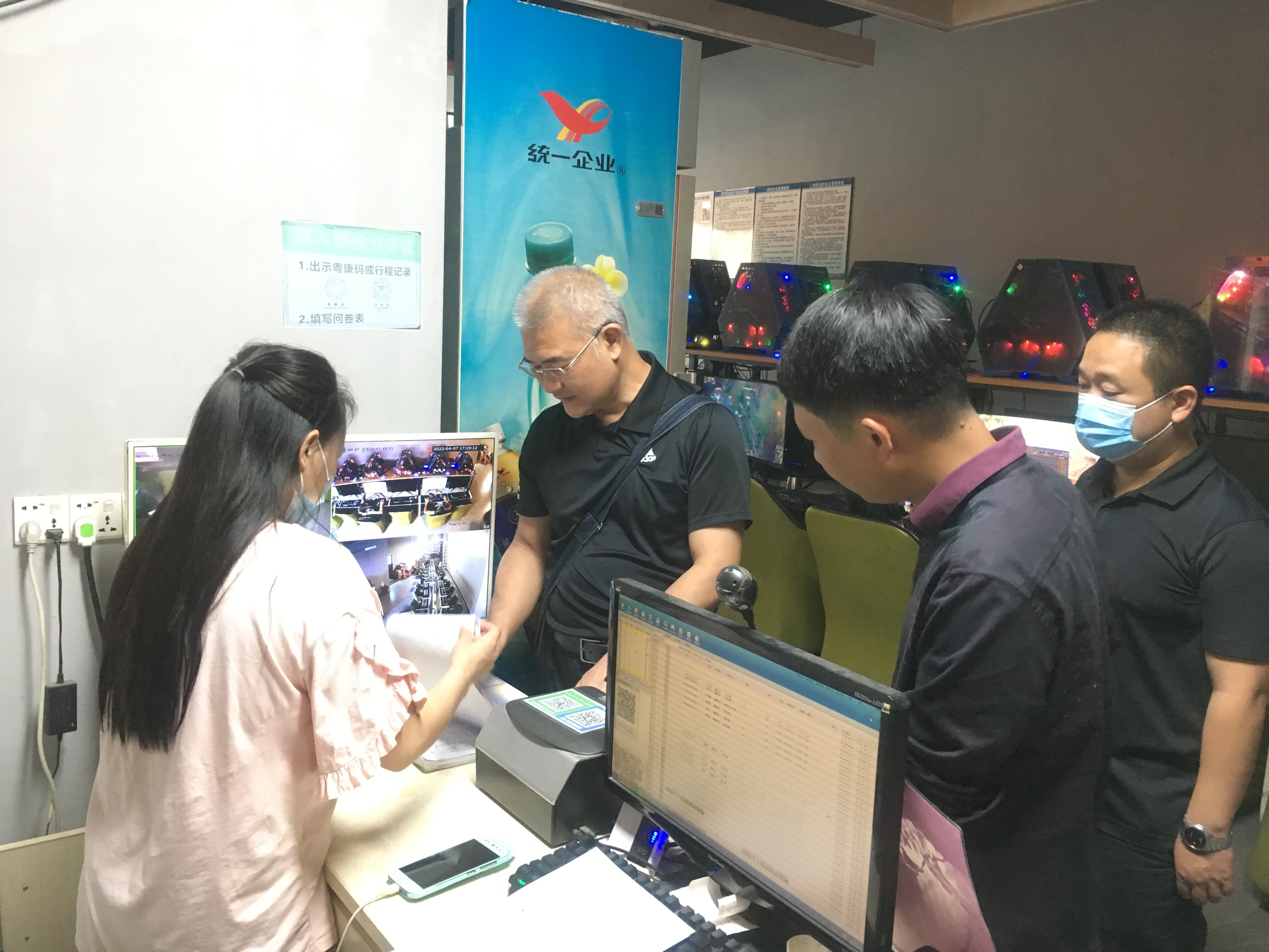 4月7日,副局長黃美安帶領市場管理股工作人員前往石灣鎮、園洲鎮,對1家網吧和2家ktv開展疫情防控和市場秩序檢查。