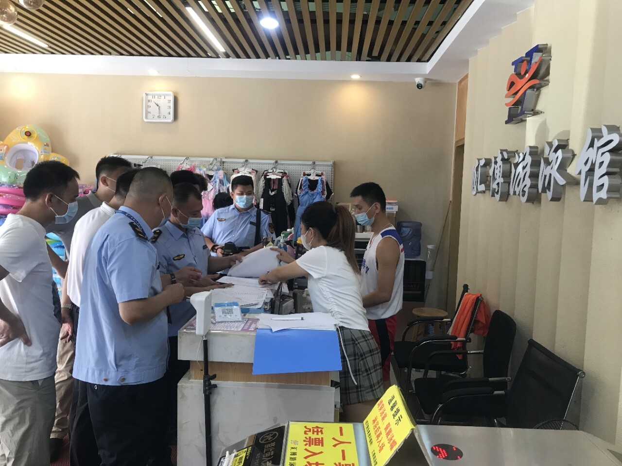 6月20日,市場管理股工作人員前往羅陽街道,對4家游泳池開展文旅體市場經營秩序檢查。