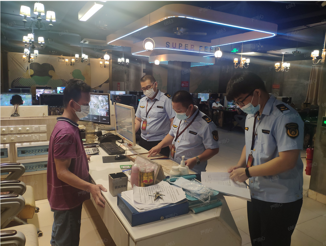 6月29日,市場(chǎng)管理股工作人員前往福田鎮(zhèn),對(duì)2家網(wǎng)吧、3家KTV、1家電子游藝場(chǎng)所開展文化市場(chǎng)經(jīng)營秩序檢查。