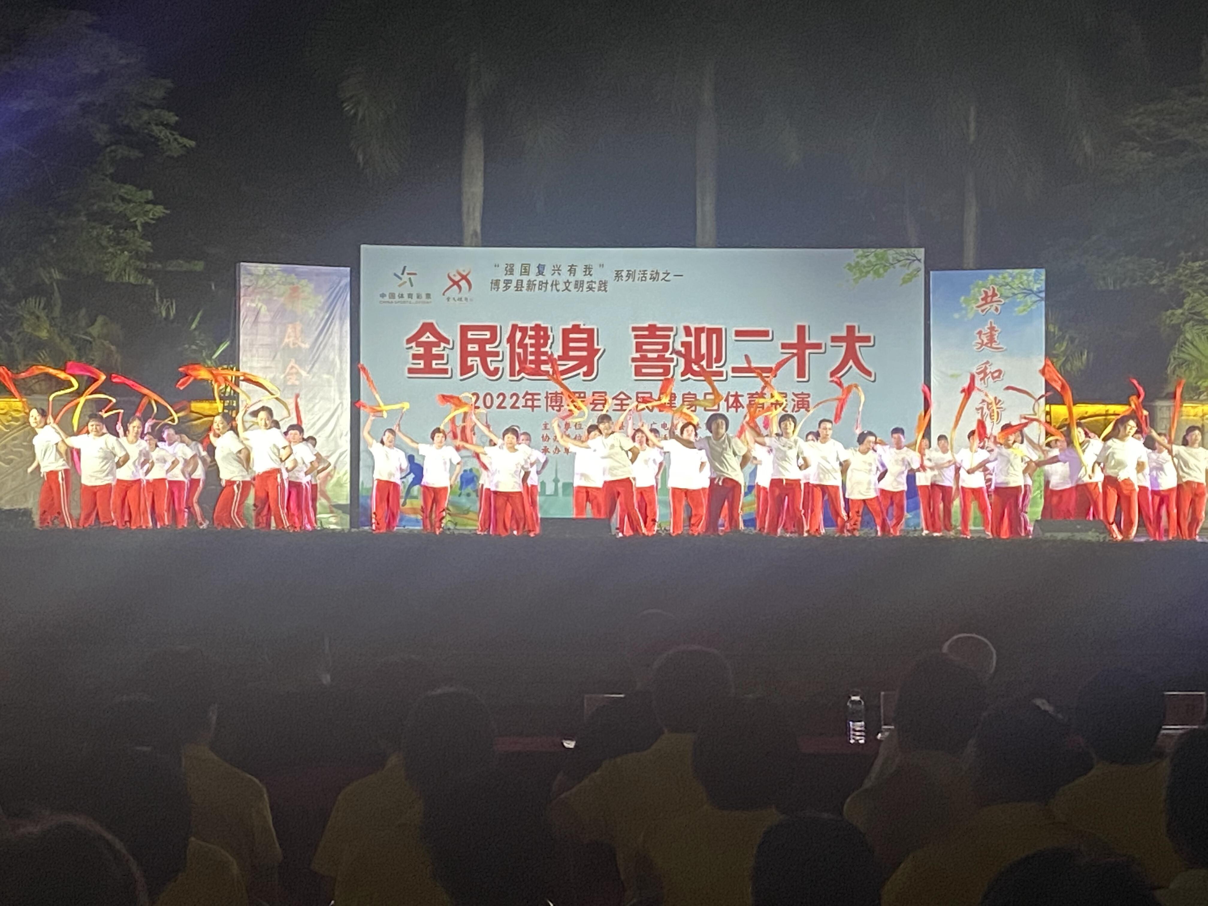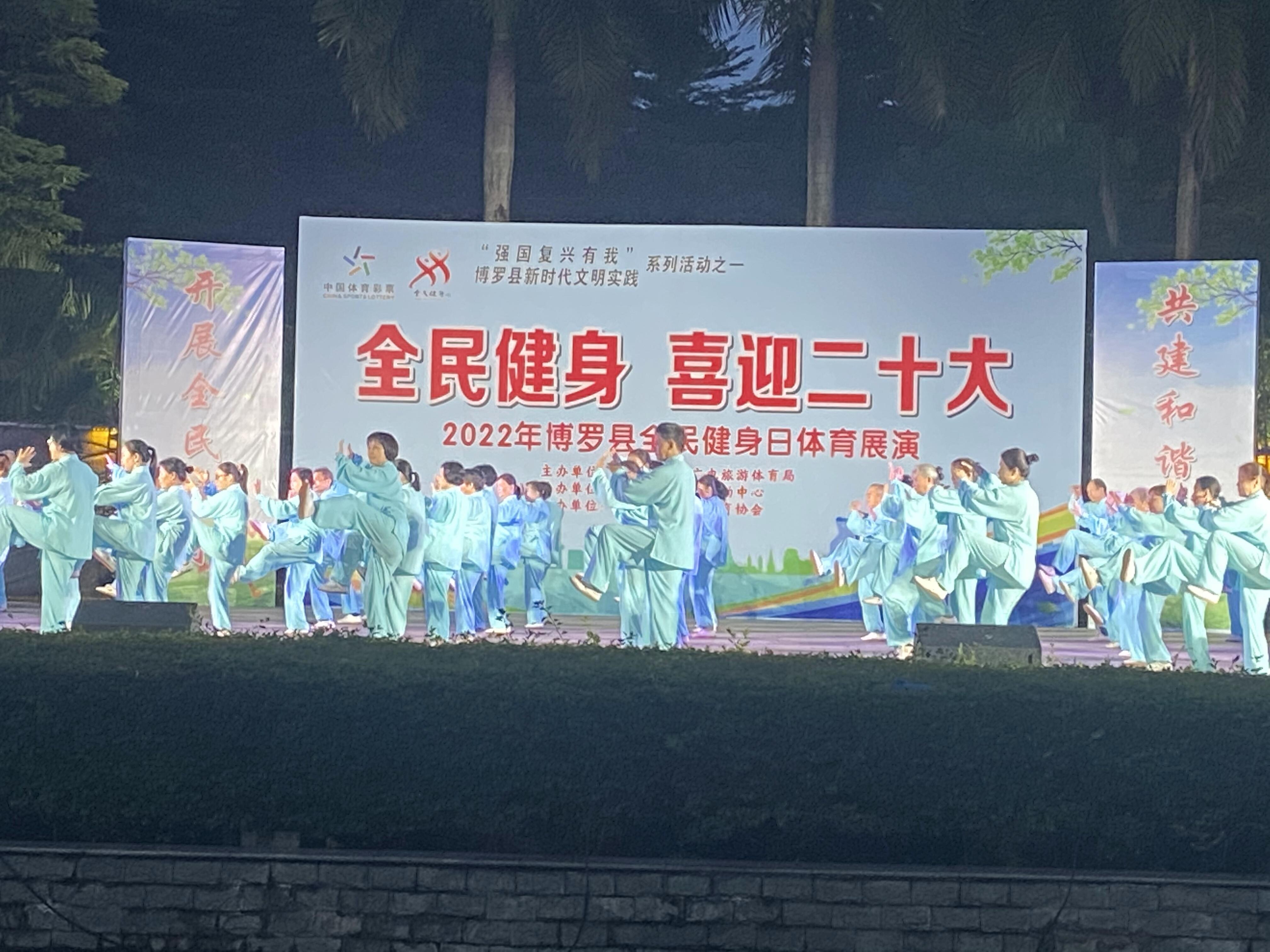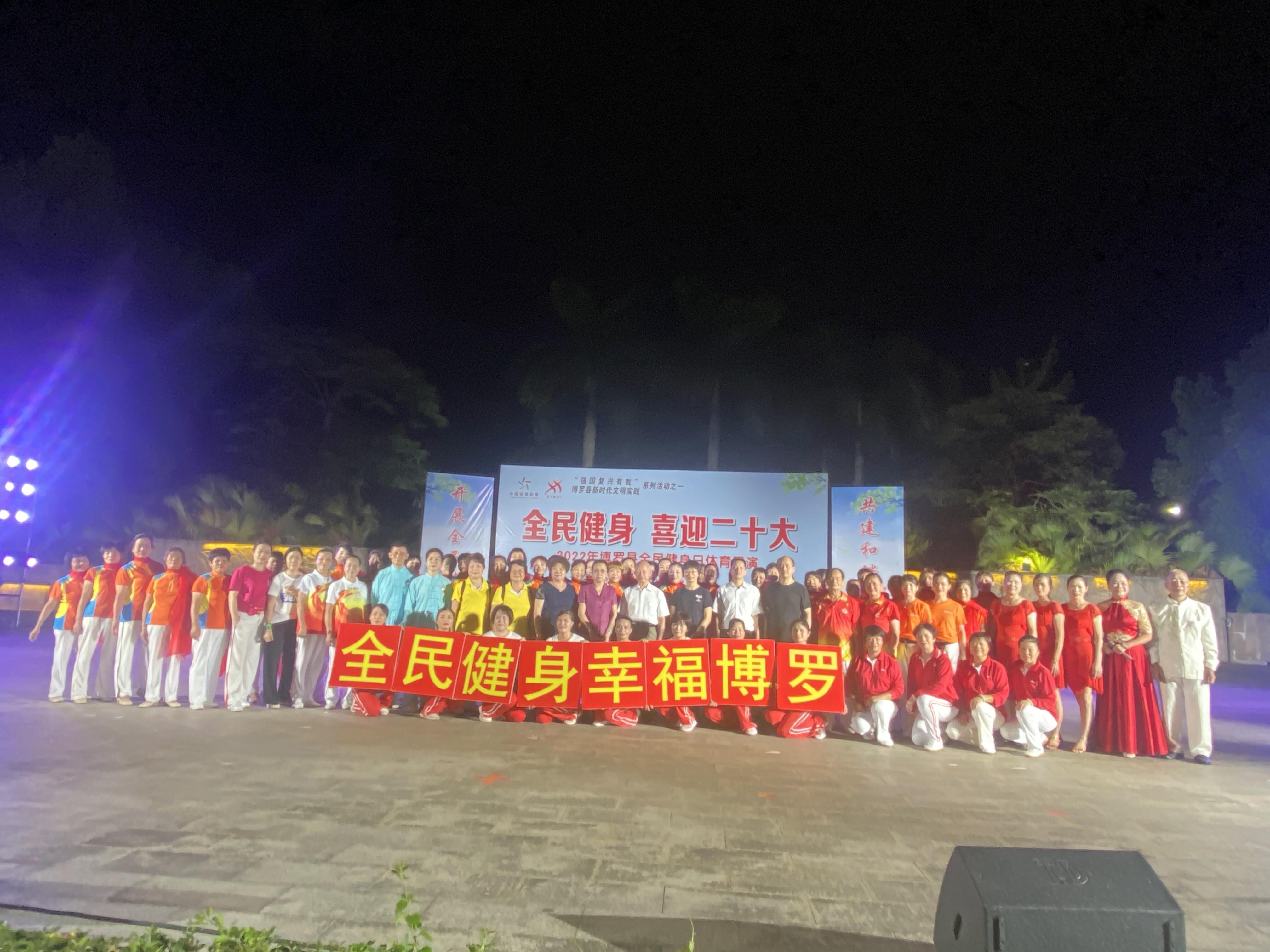2022年8月8日是我國第14個全民健身日,為推動博羅縣全民健身活動深入開展,滿足廣大人民群眾在新時期的健身鍛煉需求,8月8日晚,由博羅縣文化廣電旅游體育局主辦、博羅縣老年人體育協會承辦的2022年博羅縣全民健身日體育展演活動,在博羅縣東山森林公園廣場成功舉辦。