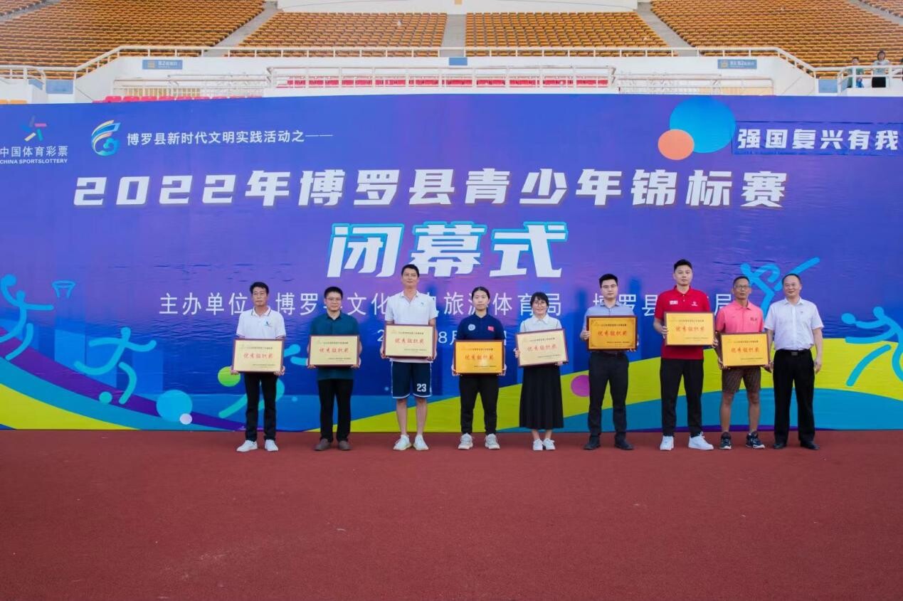 8月15日下午,由縣文化廣電旅游體育局、縣教育局主辦的2022年博羅縣青少年錦標賽閉幕式在縣體育中心體育場舉辦。縣委常委、宣傳部部長趙碧波,縣文化廣電旅游體育局局長陳雪花、縣教育局局長李云才、縣文化廣電旅游體育局黨組成員、四級調研員鄭浩、縣教工委副書記周建華等領導出席閉幕式并頒獎。經過6天的緊張角逐,最終園洲鎮代表隊獲得了代表團團體總分第一名,羅陽街道代表隊、石灣鎮代表隊分別獲得代表團團體總分第二和第三名。