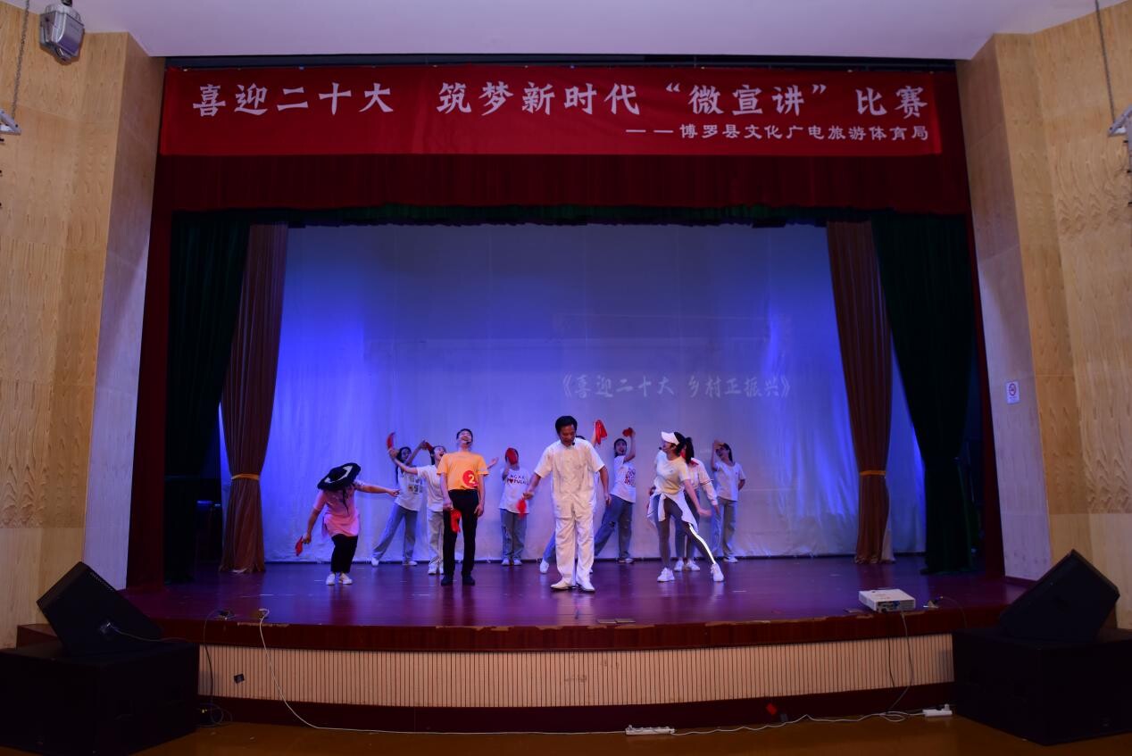 為挖掘選拔我縣新時代文明實踐理論政策宣講人才,進一步提升干部職工理論政策宣講工作水平,更好推動習近平新時代中國特色社會主義思想在博羅大地深入人心、落地生根,結合迎接宣傳貫徹黨的二十大工作部署,9月22日上午,博羅縣文化廣電旅游體育局舉辦了“喜迎二十大筑夢新時代”2022年博羅縣新時代文明實踐“微宣講”比賽。
