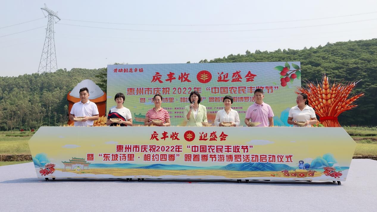 ?。?/span>月23日,“慶豐收 迎盛會”惠州市慶祝2022年“中國農民豐收節”暨“東坡詩里·相約四季”跟著季節游博羅啟動儀式活動在博羅縣湖鎮鎮坪山村歡樂稻場舉行?;葜菔修r業農村局副局長邱蘭英、博羅縣人民政府副縣長北如、廣東省農科院蔬菜所副所長尹艷、博羅縣農業農村局局長陳永忠、博羅縣文化廣電旅游體育局局長陳雪花、博羅縣農業農村綜合服務中心主任趙春艷、中共湖鎮鎮黨委書記劉偉榮等出席活動。