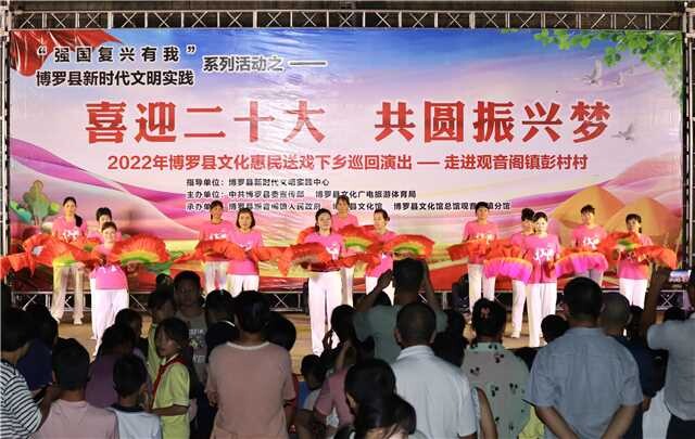 9月20-23日,“喜迎二十大,共圓振興夢”2022年博羅縣文化惠民送戲下鄉巡回演出分別在麻陂鎮文化廣場、楊村鎮井水龍村委會、公莊鎮溪聯文化廣場、觀音閣鎮彭村村舉辦。