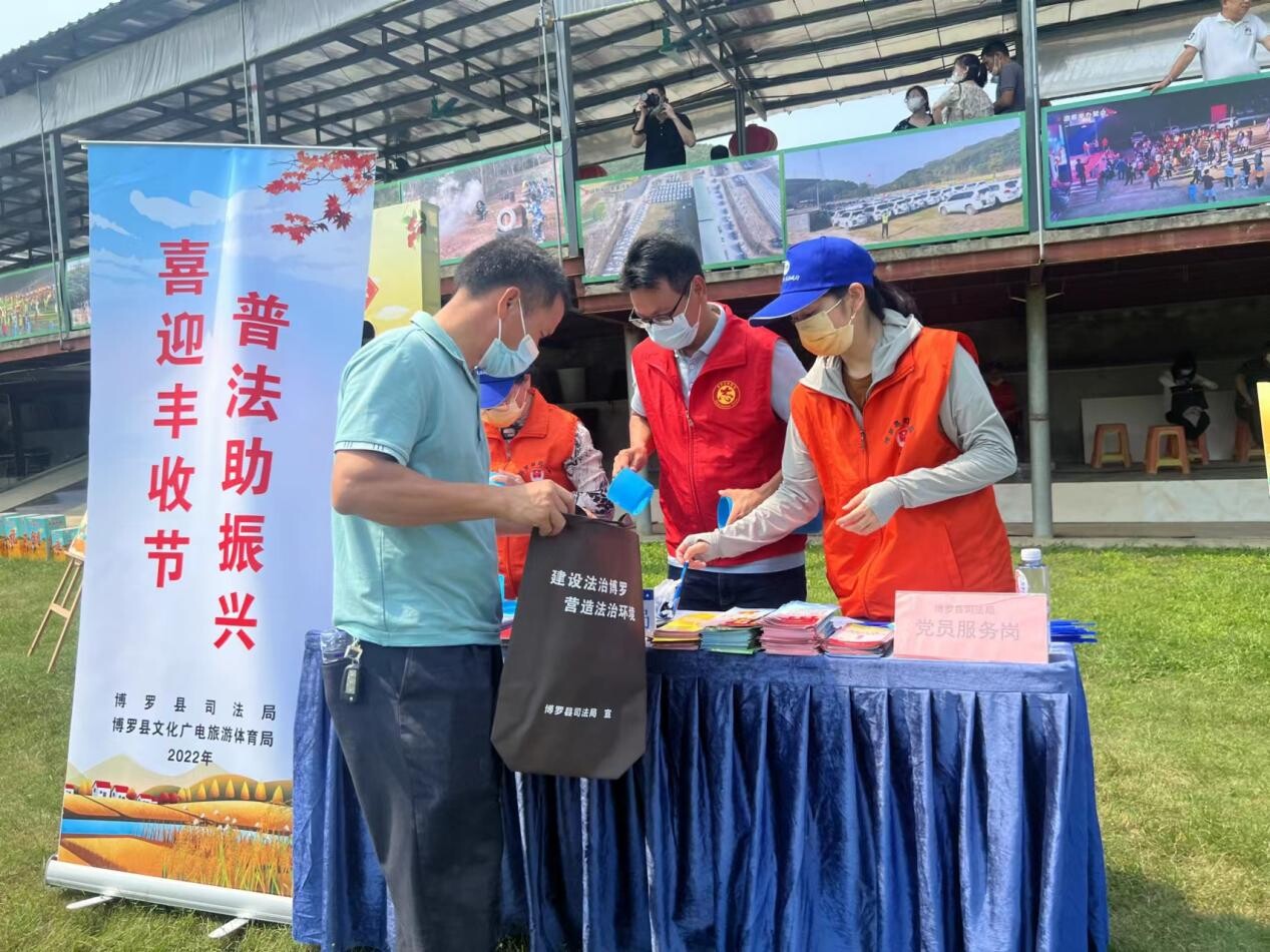 9月23日,為進一步拓展農村農業農民相關法律政策的普及面,提高農民群眾的法治意識和法治觀念,我局聯合博羅縣司法局在湖鎮鎮坪山村歡樂稻場開展“喜迎豐收節,普法助振興”的主題普法宣傳活動,將法治元素融入“中國農民豐收節”。