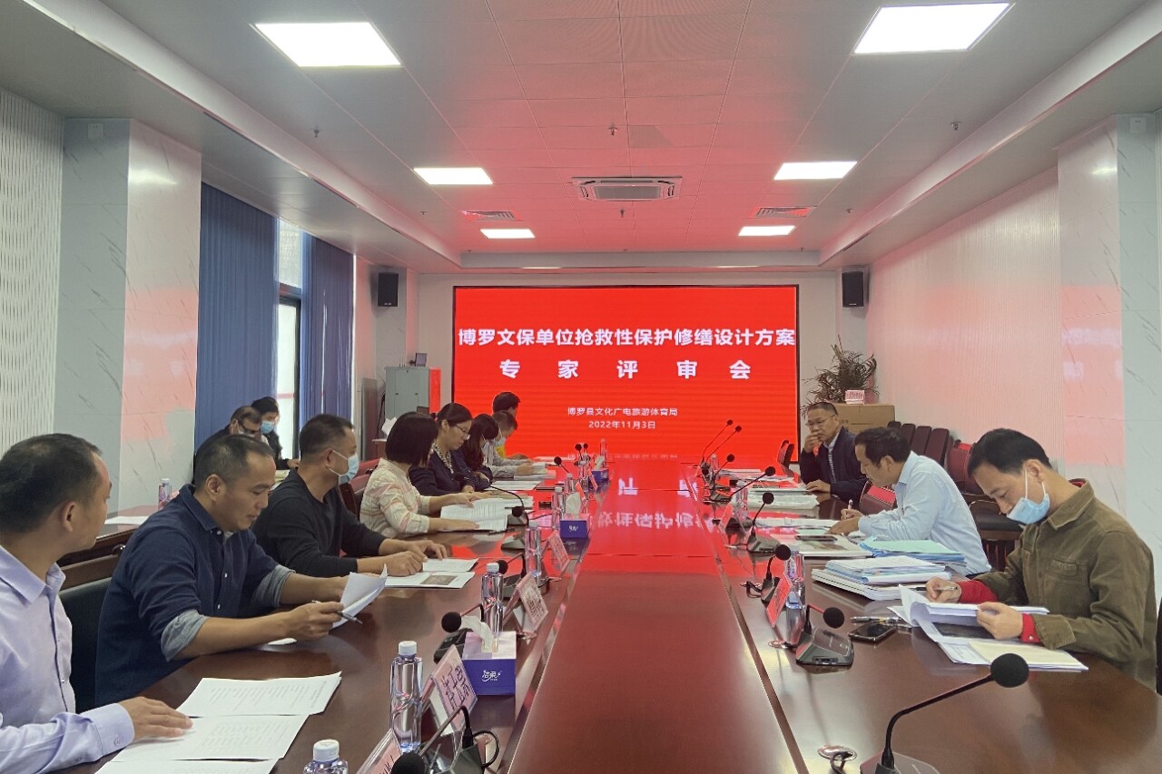 11月3日,博羅縣文化廣電旅游體育局組織召開了文物保護專家評審會,特邀惠州學院、惠州市博物館、惠東縣博物館的專家組成評審專家組。博羅縣文化廣電旅游體育局、博羅縣博物館、縣各有關鎮(街道)、方案設計單位代表參加了本次會議。