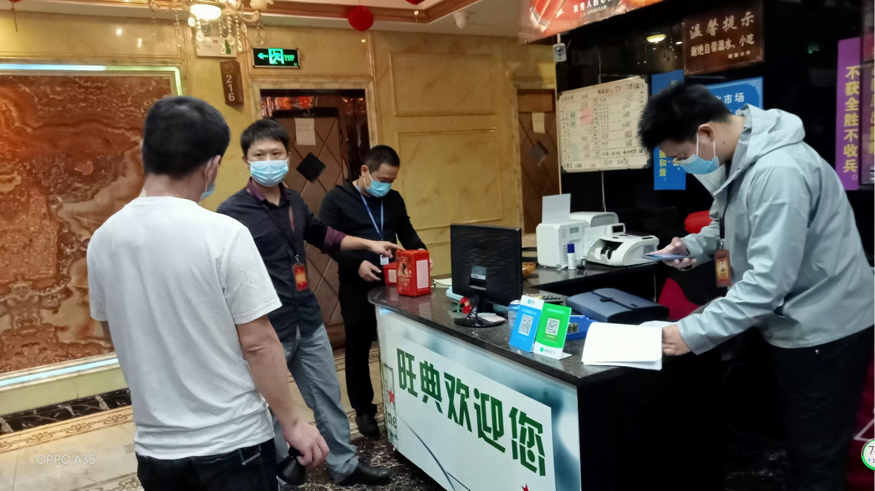 11月3日,市場管理股工作人員前往石灣鎮,對1家網吧、1家ktv、1家游泳池申請行政審批事項進行場地審核。