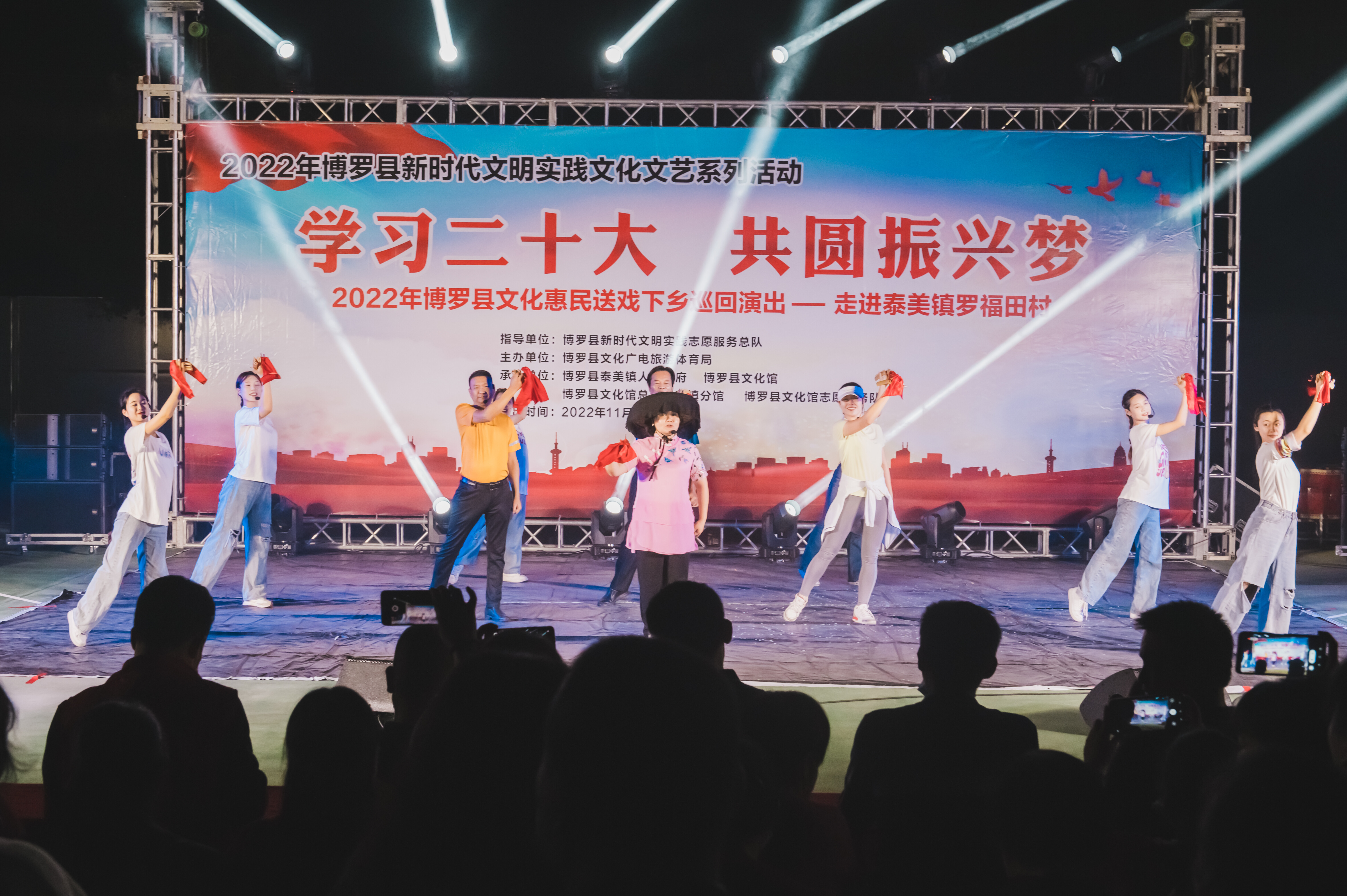 11月9日,“學習黨的二十大 共圓振興夢”2022博羅縣文化惠民送戲下鄉巡回演出分別在泰美鎮羅福田村和長寧鎮古坭塘村舉行。