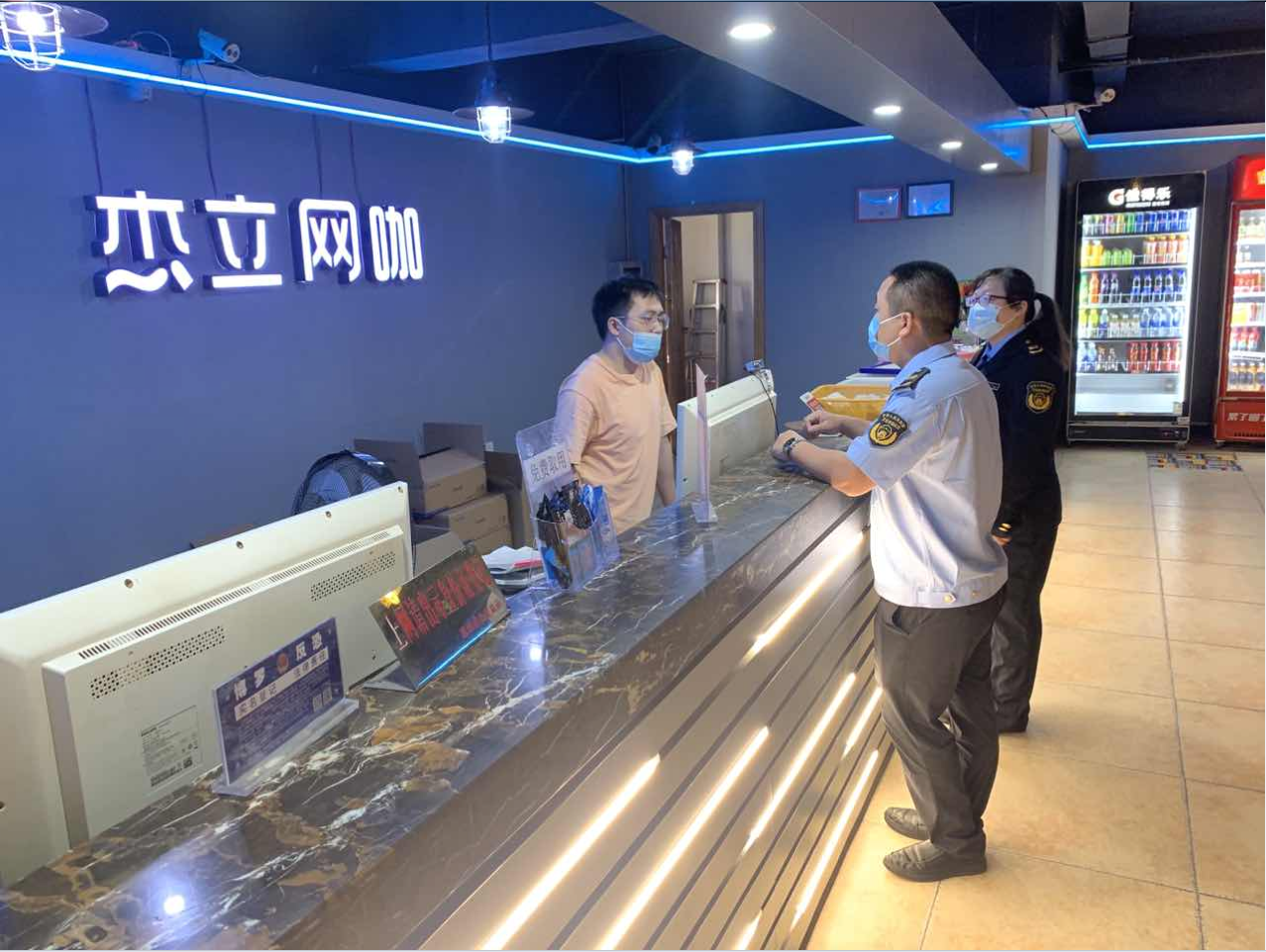 ?。保?span lang="zh-CN">月17日,市場(chǎng)管理股工作人員前往羅陽街道對(duì)6家網(wǎng)吧、1家室內(nèi)游藝場(chǎng)所開展文化市場(chǎng)經(jīng)營(yíng)秩序檢查。檢查中發(fā)現(xiàn)個(gè)別企業(yè)存在安全出口疏散門未開通、疏散指示燈未開啟、場(chǎng)所人員未佩戴口罩等問題,工作人員已現(xiàn)場(chǎng)要求其整改。