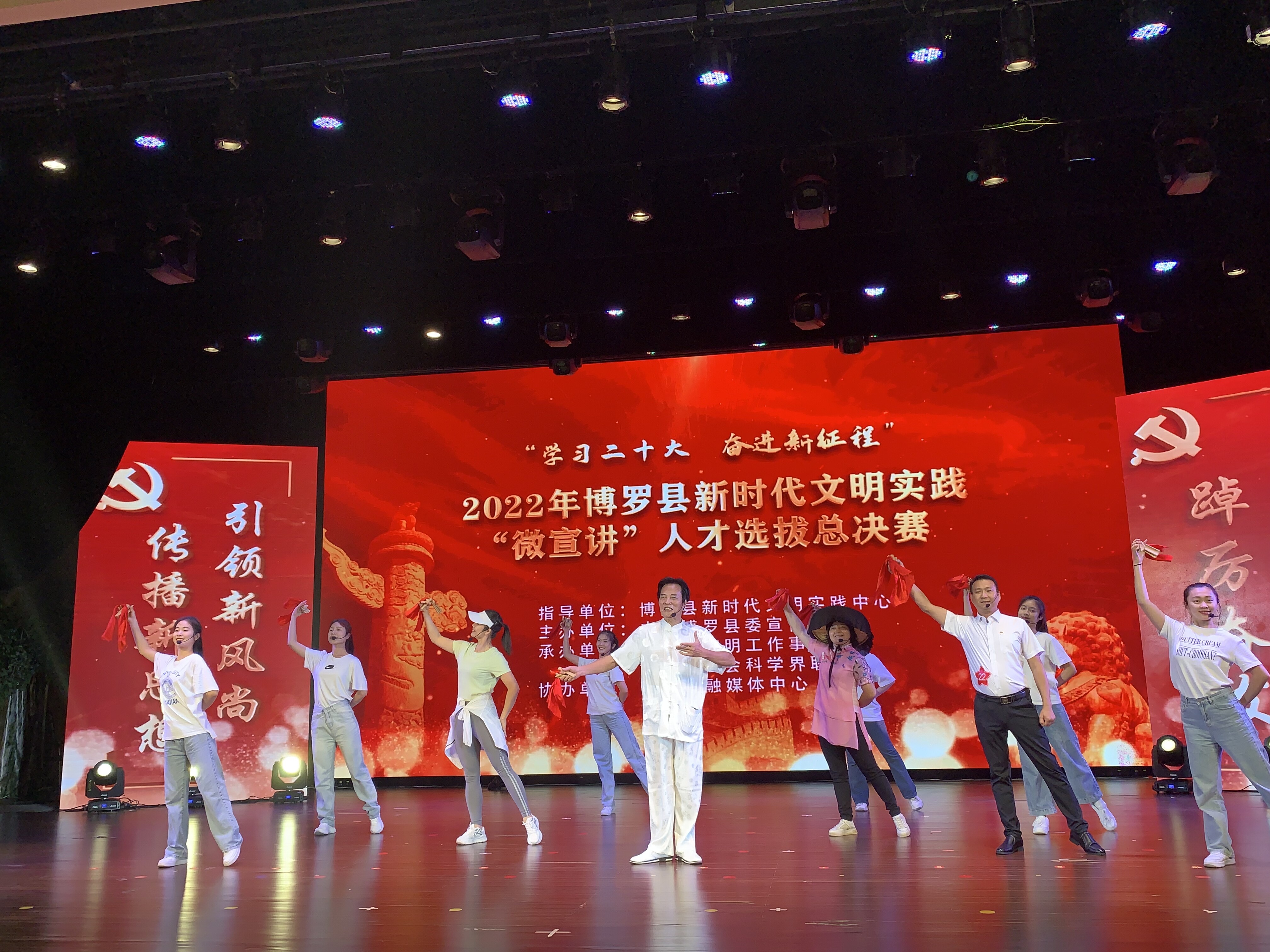 11月25日,我局劉丹、吳金鵬、張佩賢、姚麗等人參加由縣委宣傳部舉辦的“學習黨的二十大 奮進新征程”2022年博羅縣新時代文明實踐“微宣講”人才選拔總決賽。經過激烈的角逐,我局的選手脫穎而出,劉丹、張佩賢、姚麗等榮獲三等獎,吳金鵬榮獲優秀獎。