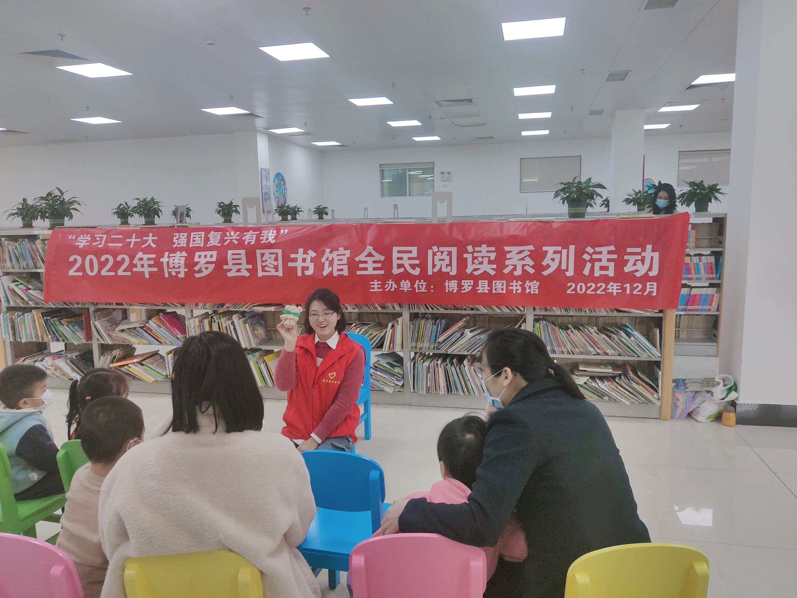 12月4日,縣圖書館在館內少兒室開展“學習黨的二十大·強國復興有我”全民閱讀系列推廣活動之親子繪本閱讀活動,20人參加了活動。