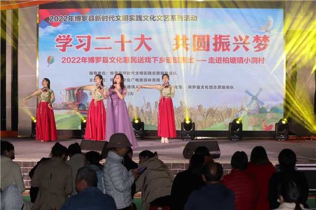12月8日,“學(xué)習(xí)黨的二十大?共圓振興夢(mèng)”2022年博羅縣文化惠民送戲下鄉(xiāng)巡回演出走進(jìn)博羅縣柏塘鎮(zhèn)小洞村。