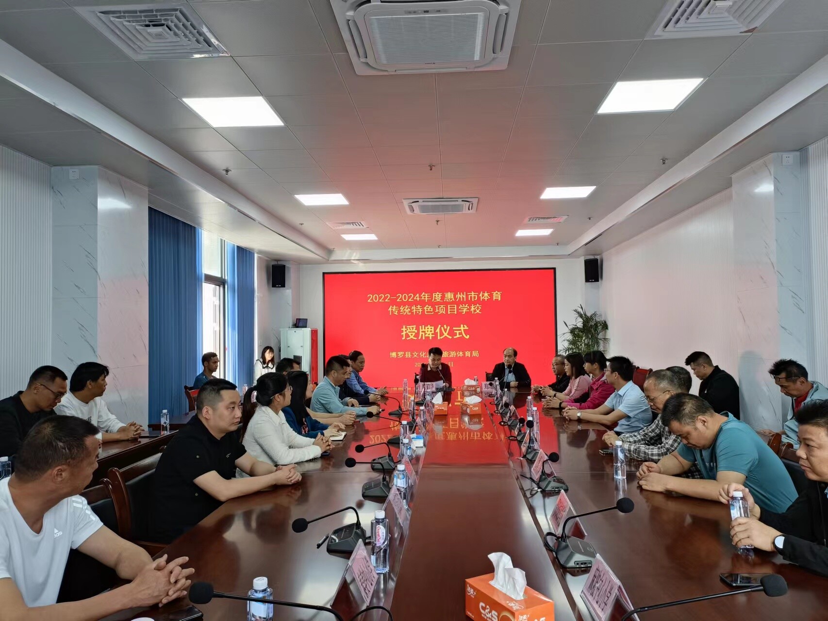 3月16日,博羅縣體育傳統特色項目學校2022年-2024年度授牌儀式在博羅縣體育中心會議室舉行。縣委教育工委副書記周建華,縣文廣旅體局黨組成員、四級調研員鄭浩,縣教育局體藝衛指導中心主任周禮賢,縣業余體育學校校長林春華,體育部門相關領導,縣業余體校全體教練員及16所體育傳統特色項目學校的分管體育領導和體育科組長參加了授牌儀式。