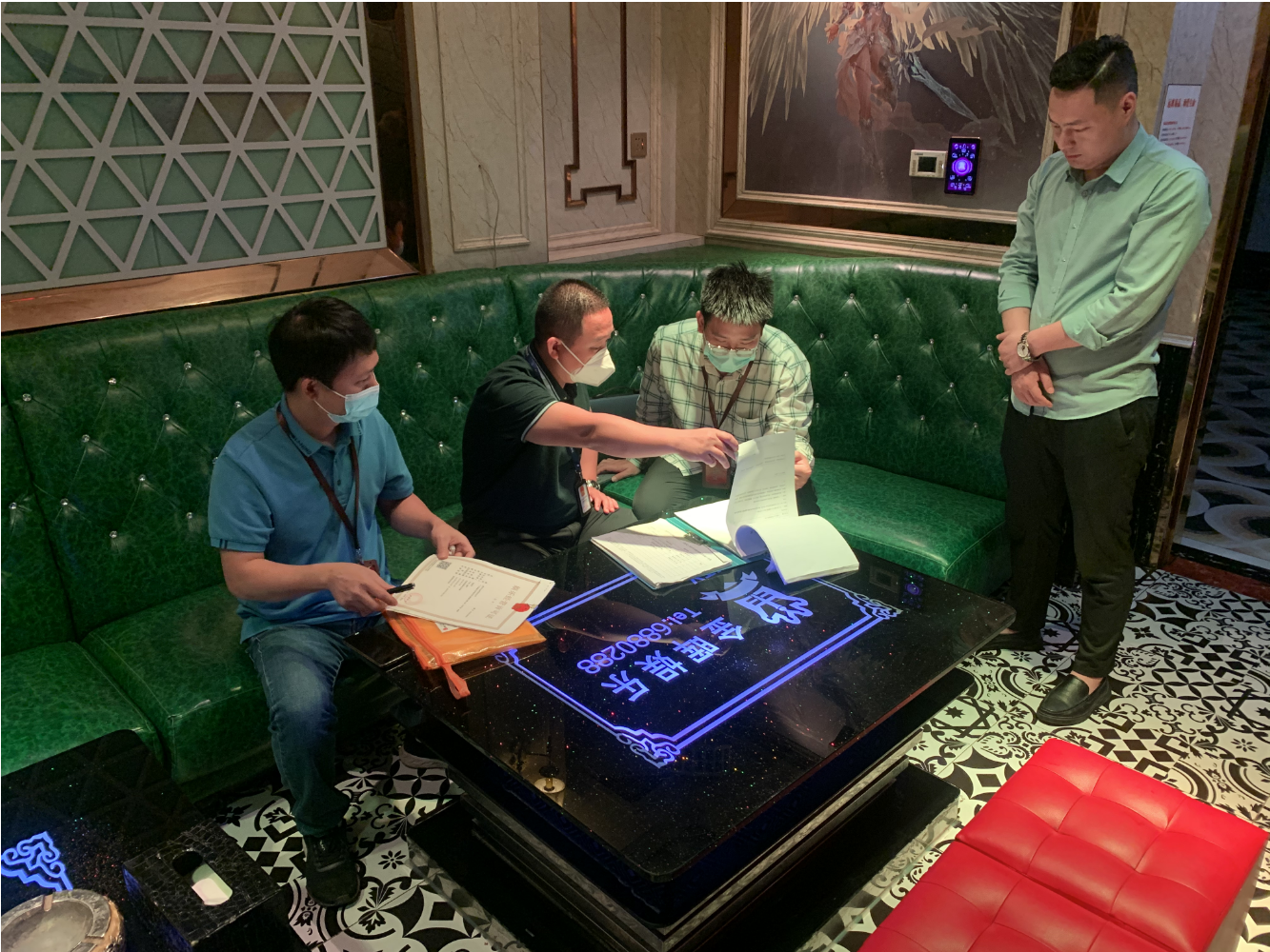 3月22日,市場管理股工作人員前往石灣鎮(zhèn)、福田鎮(zhèn),分別對1家網(wǎng)吧、1家電子游藝場所申請新設(shè)立、2家KTV申請變更法人進行場地審核。