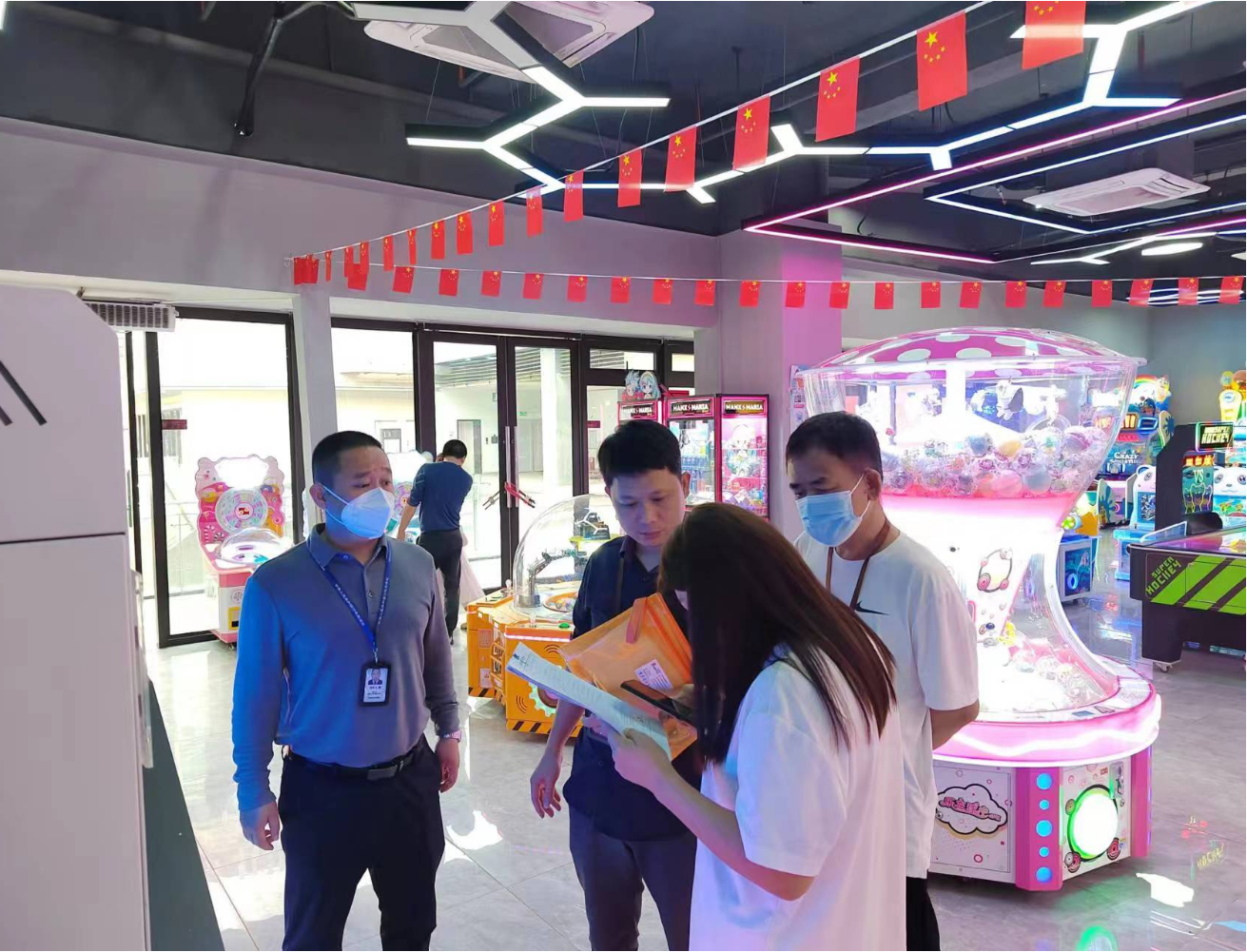 4月6日,市場管理股工作人員前往園洲鎮、石灣鎮對1家游藝場所申請新設立、3家KTV申請延續進行場地審核。