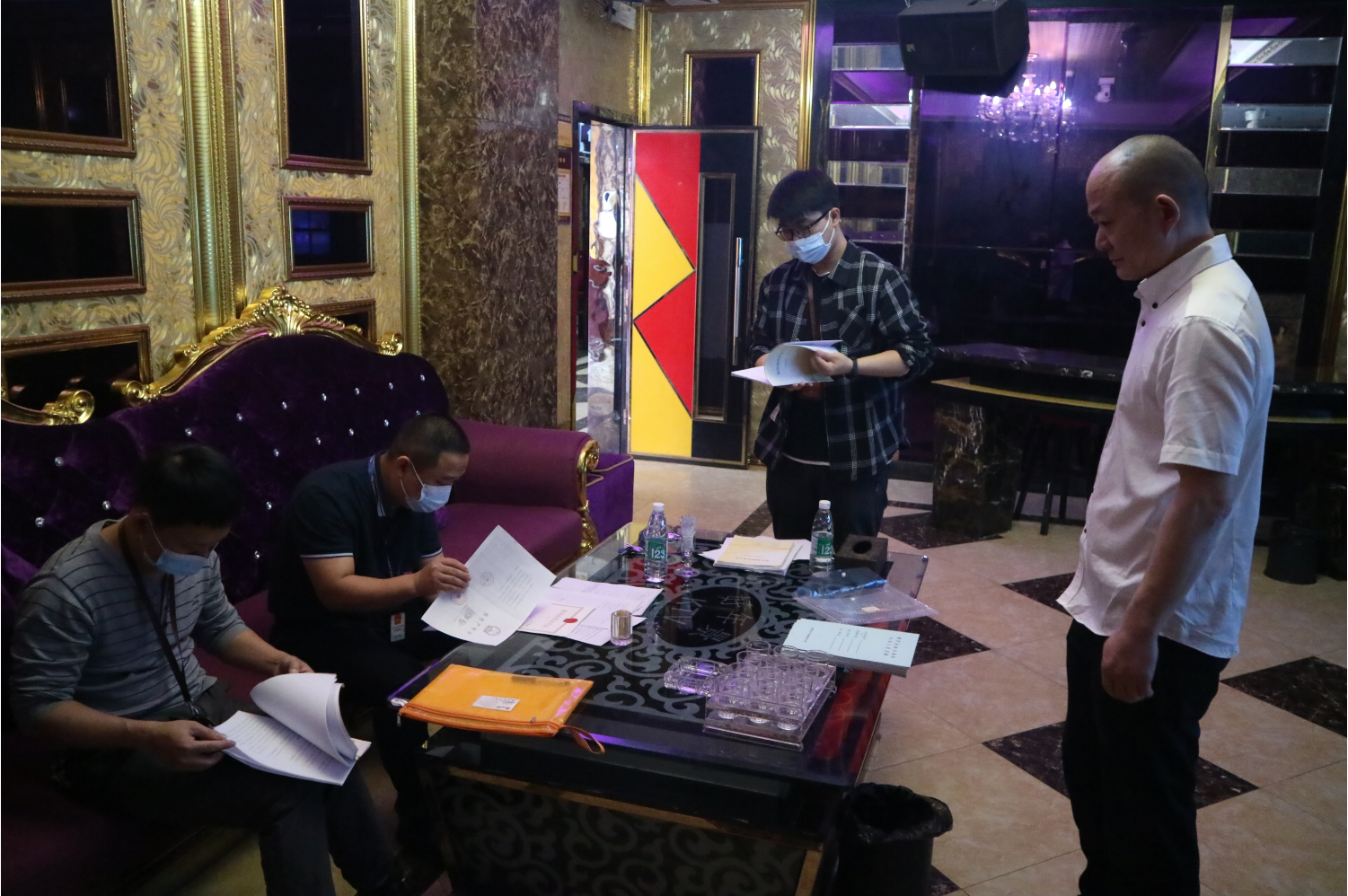 4月7日,市場管理股工作人員前往湖鎮鎮對2家KTV申請延續進行場地審核。