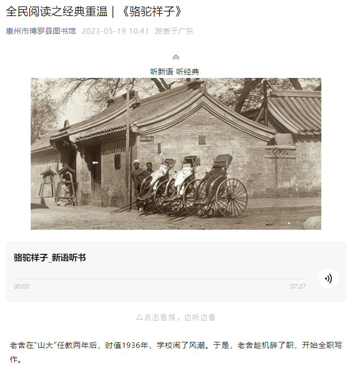 5月19日,博羅縣圖書館開(kāi)展線上全民閱讀活動(dòng)之經(jīng)典重溫《駱駝祥子》、歷史故事《一棋連八方》。