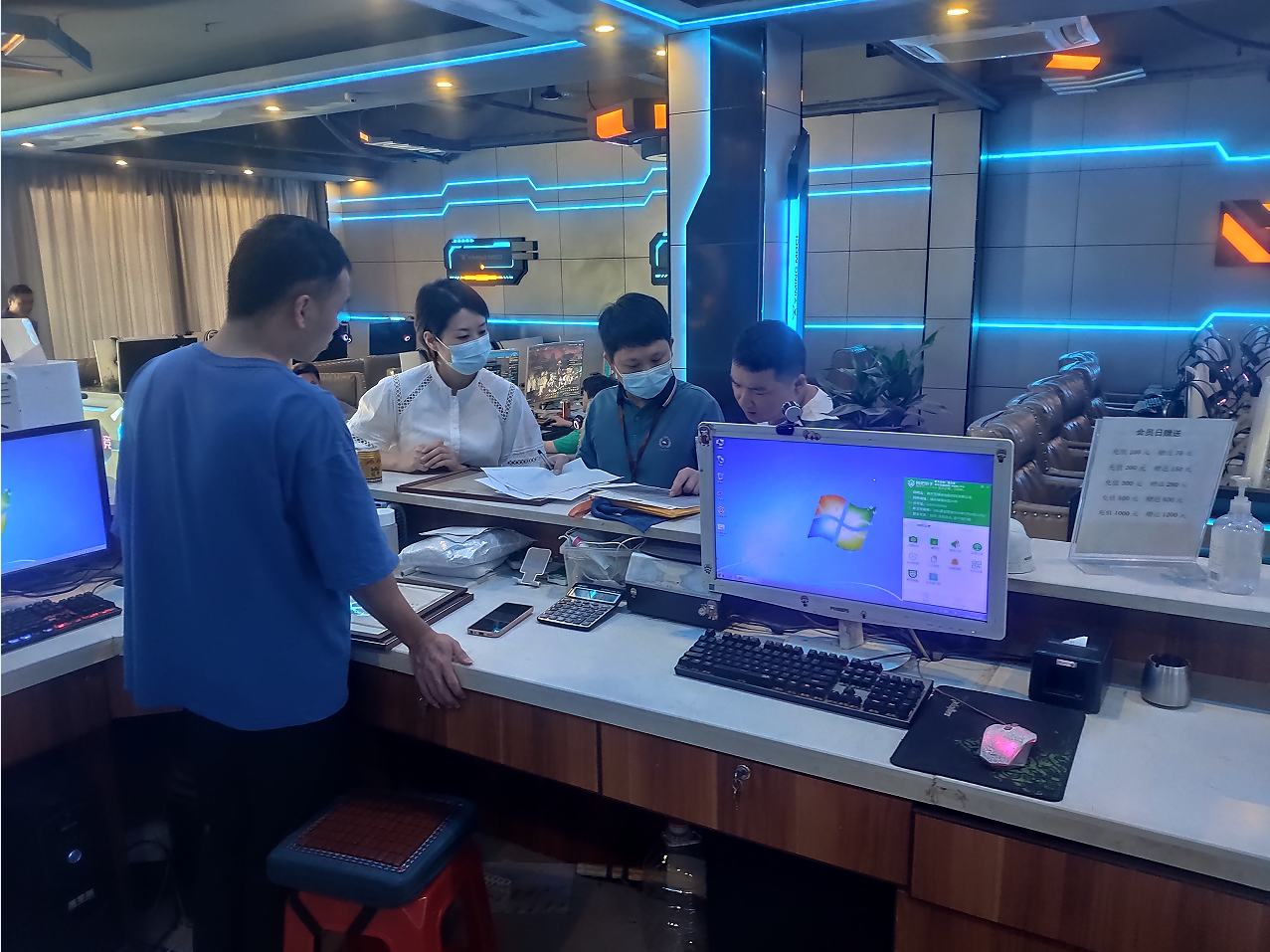 5月29日,黨組成員、副局長盧瀚春帶領市場管理股工作人員前往石灣鎮、福田鎮,對1家KTV申請延續、2家網吧申請變更法人進行場地審核。