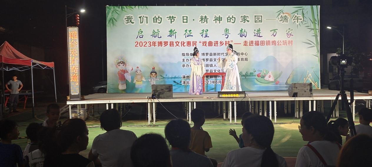6月20日,“我們的節(jié)日 精神的家園——端午”2023年博羅縣文化惠民戲曲進(jìn)鄉(xiāng)村活動(dòng)走進(jìn)福田鎮(zhèn)雞公坑村。
