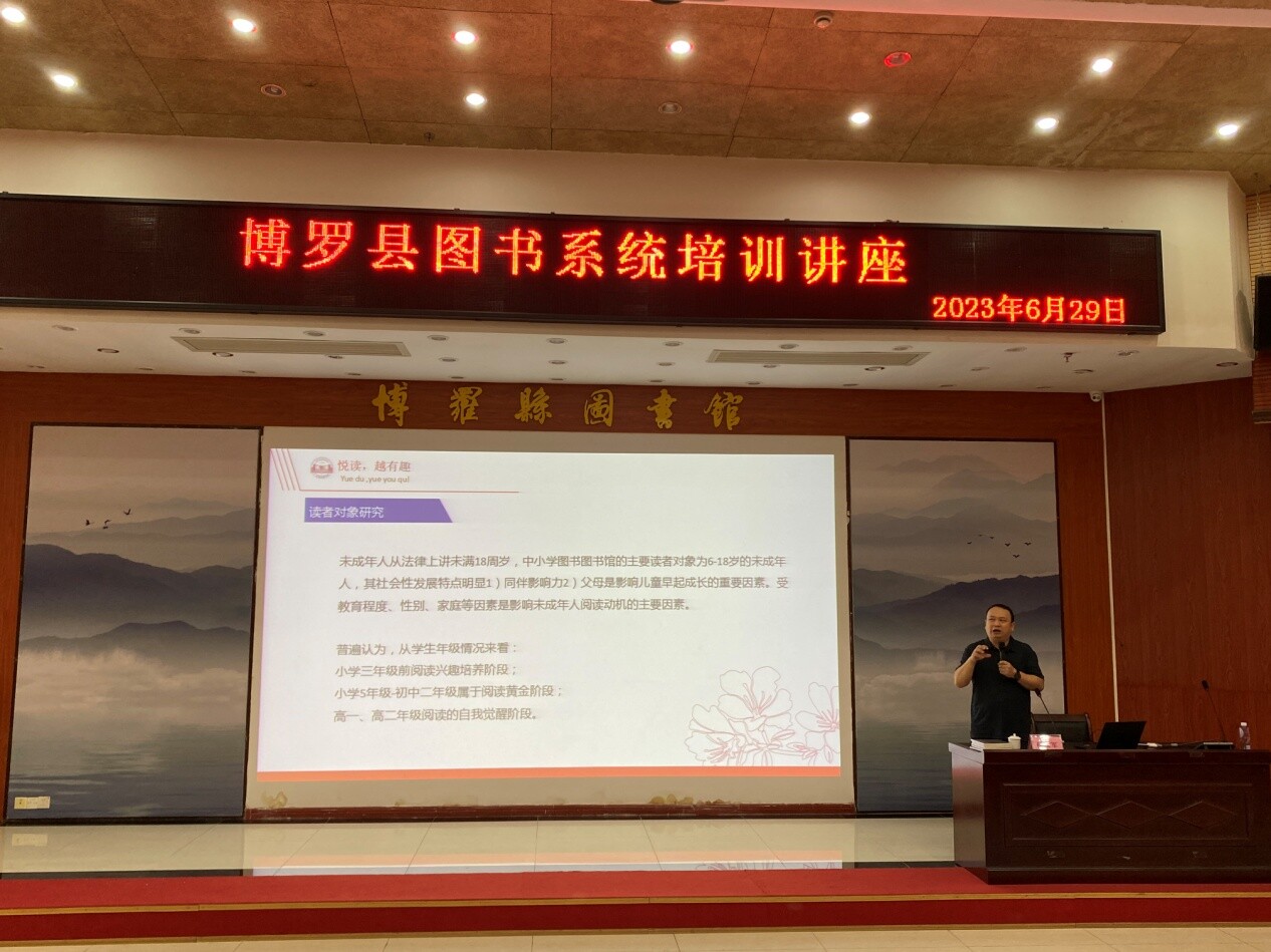 為深入貫徹落實習(xí)近平總書記關(guān)于提倡“多讀書、建設(shè)書香社會”的重要論述及黨中央、國務(wù)院關(guān)于“倡導(dǎo)全民閱讀,推進(jìn)學(xué)習(xí)型社會建設(shè)”的重要部署,進(jìn)一步激發(fā)全民閱讀熱情,不斷提高“書香博羅”建設(shè)水平。6月29日上午,由博羅縣文化廣電旅游體育局主辦,縣圖書館承辦的2023年博羅縣圖書系統(tǒng)培訓(xùn)講座在縣圖書館多功能報告廳舉行。各鎮(zhèn)街分管文化工作的領(lǐng)導(dǎo)及黨群服務(wù)中心主任、縣教育局有關(guān)股室負(fù)責(zé)人及工作人員、全縣中小學(xué)學(xué)校分館圖書館工作的領(lǐng)導(dǎo)及縣圖書館全體館員共113人參加培訓(xùn)。