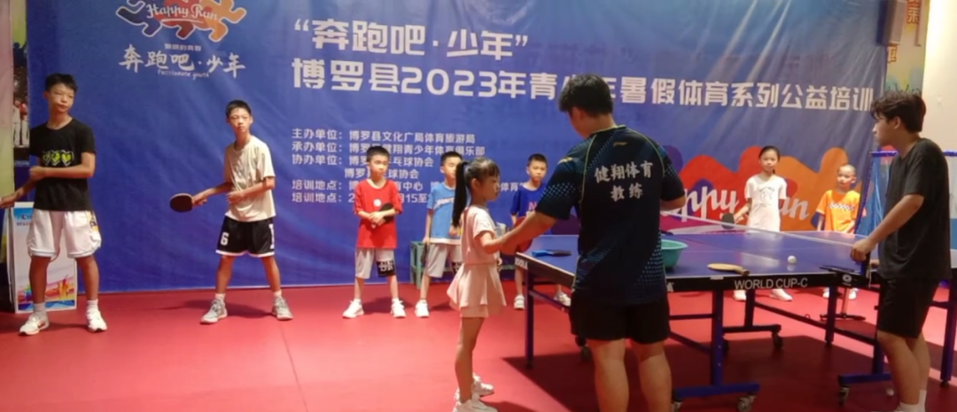 “奔跑吧·少年”博羅縣2023年暑假青少年體育公益培訓活動是根據全國統一部署的“奔跑吧·少年”兒童青少年健身主題活動開展的,由博羅縣文化廣電旅游體育局主辦,博羅縣健翔青少年體育俱樂部承辦,博羅縣足球協會、博羅縣乒乓球協會協辦。本期青少年系列體育公益培訓活動時間為7月15日至24日,分別在縣體育中心、啟正學校體育館兩地同步開展。設足球、籃球、羽毛球、乒乓球、跳繩、跆拳道、網球和AI智能體能等8個體育培訓項目。