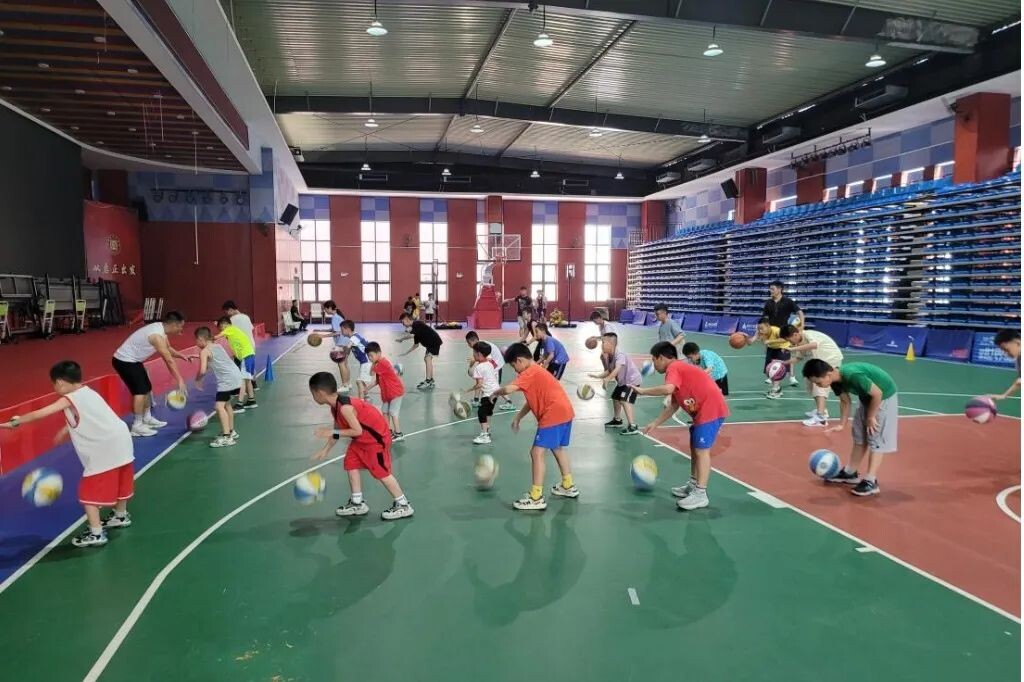 此起彼伏的籃球敲擊聲響徹整個場館,數十名學生在教練的帶領下進行籃球訓練,運球、控球、投球……每一個訓練項目都在有條不紊進行,不少參與其中的孩子從零基礎到逐漸愛上了這項體育運動。